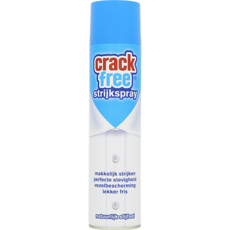 Crackfree Strijkspray maakt strijkgoed stevig en fris. Deze innovatieve spray beschermt uw kleding langer tegen vuil, waardoor het strijken eenvoudiger en sneller gaat. Ideaal voor het onderhouden van uw kleding en het verkrijgen van een perfect strijkresultaat.