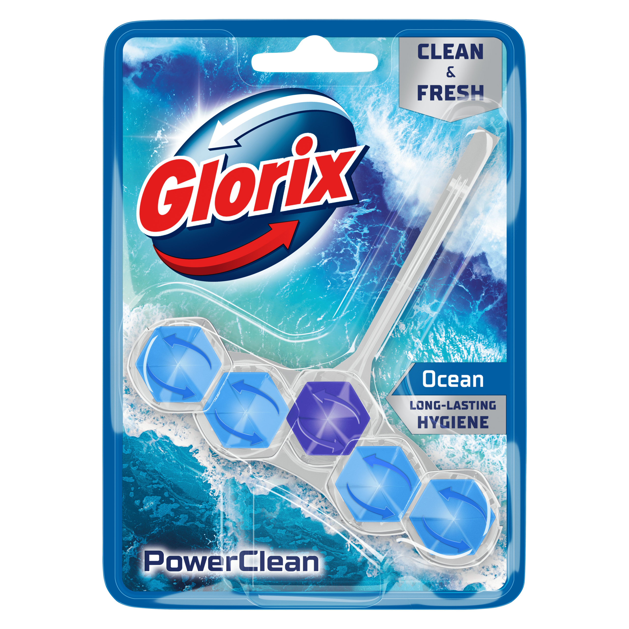 Het Glorix Ocean Toiletblok biedt tot wel 300 spoelbeurten lang een krachtige, hygiënische reiniging. Met zijn unieke reinigende schuim en anti-kalkwerking houdt dit toiletblok je toilet langdurig fris en glanzend. De 100% recyclebare hanger zorgt ervoor dat je niet alleen streeft naar een schoon toilet, maar ook naar een duurzaam milieu. Glorix is al bijna 100 jaar de expert op het gebied van hygiëne en deze Power 5 variant is ideaal voor dagelijks gebruik.