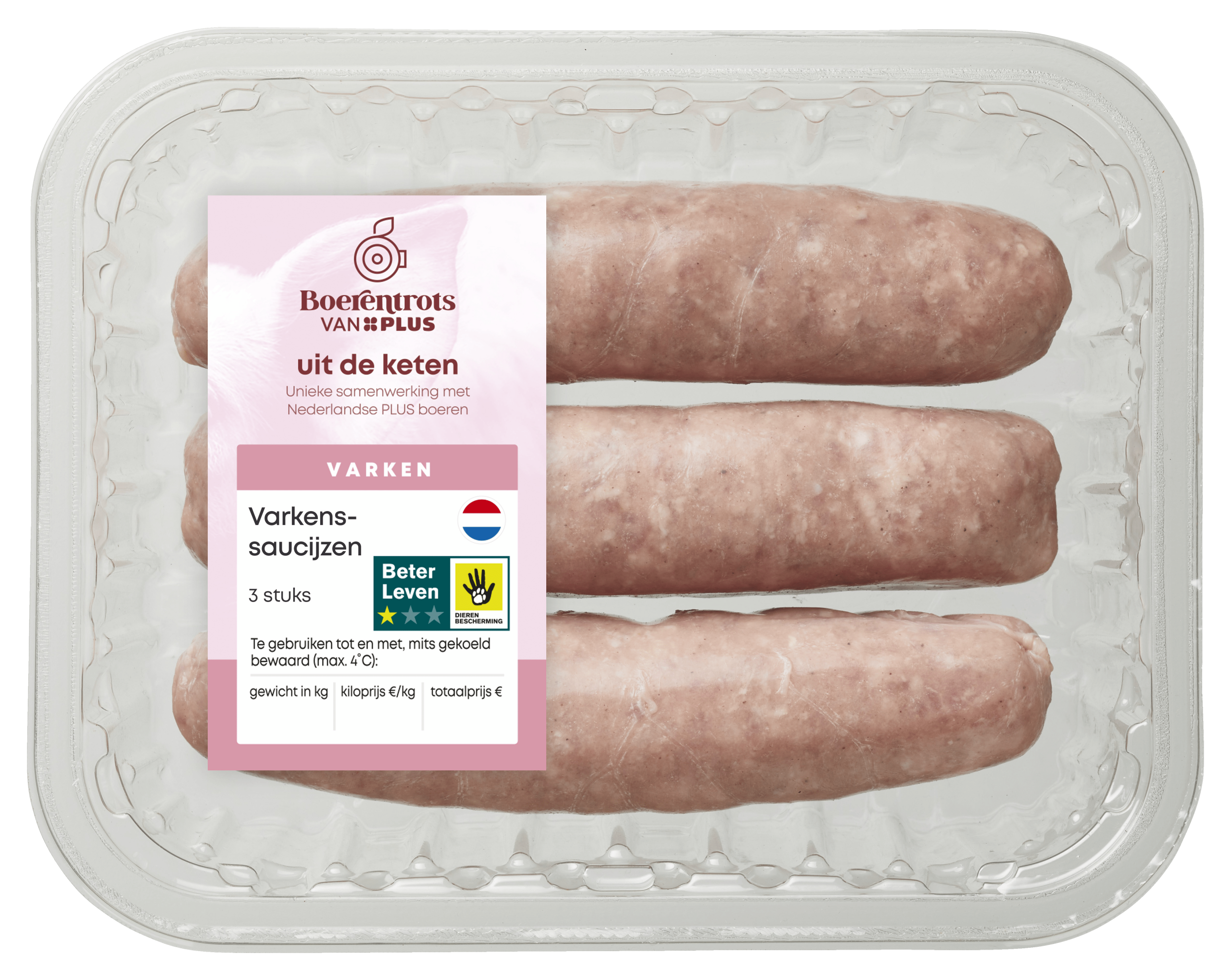 PLUS Boerentrots Varkenssaucijzen 3 st – Plus