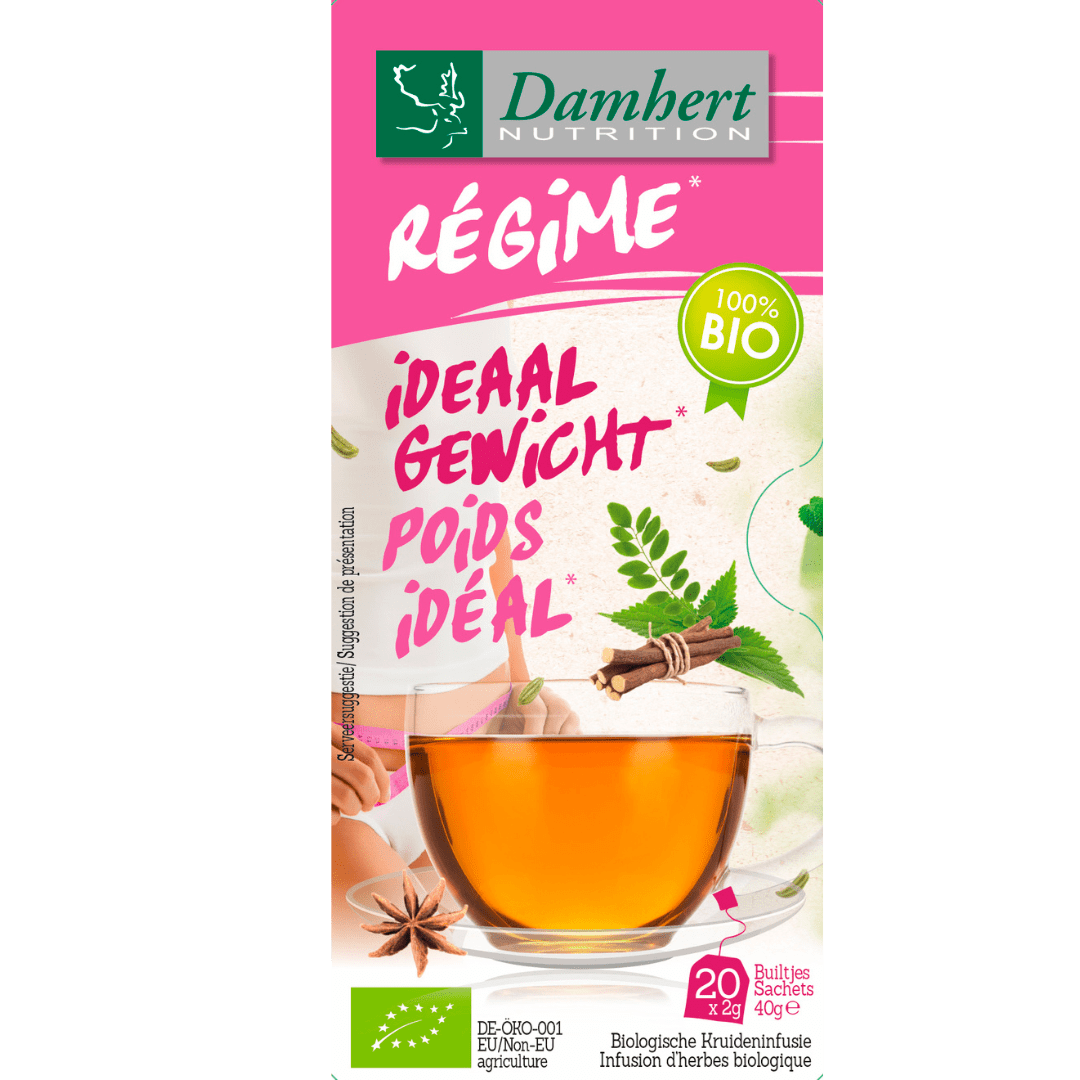 Damhert Slim thee ideaal gewicht is een heerlijke kruidenmengeling die helpt bij de spijsvertering en bijdraagt aan het bereiken en behouden van een ideaal silhouet. Deze biologische thee bevat een mix van venkel, brandnetel, senna, anijs, cichorei en zoethout. Voeg eenvoudig kokend water toe en laat het 6 minuten trekken voor een optimale smaakbeleving.