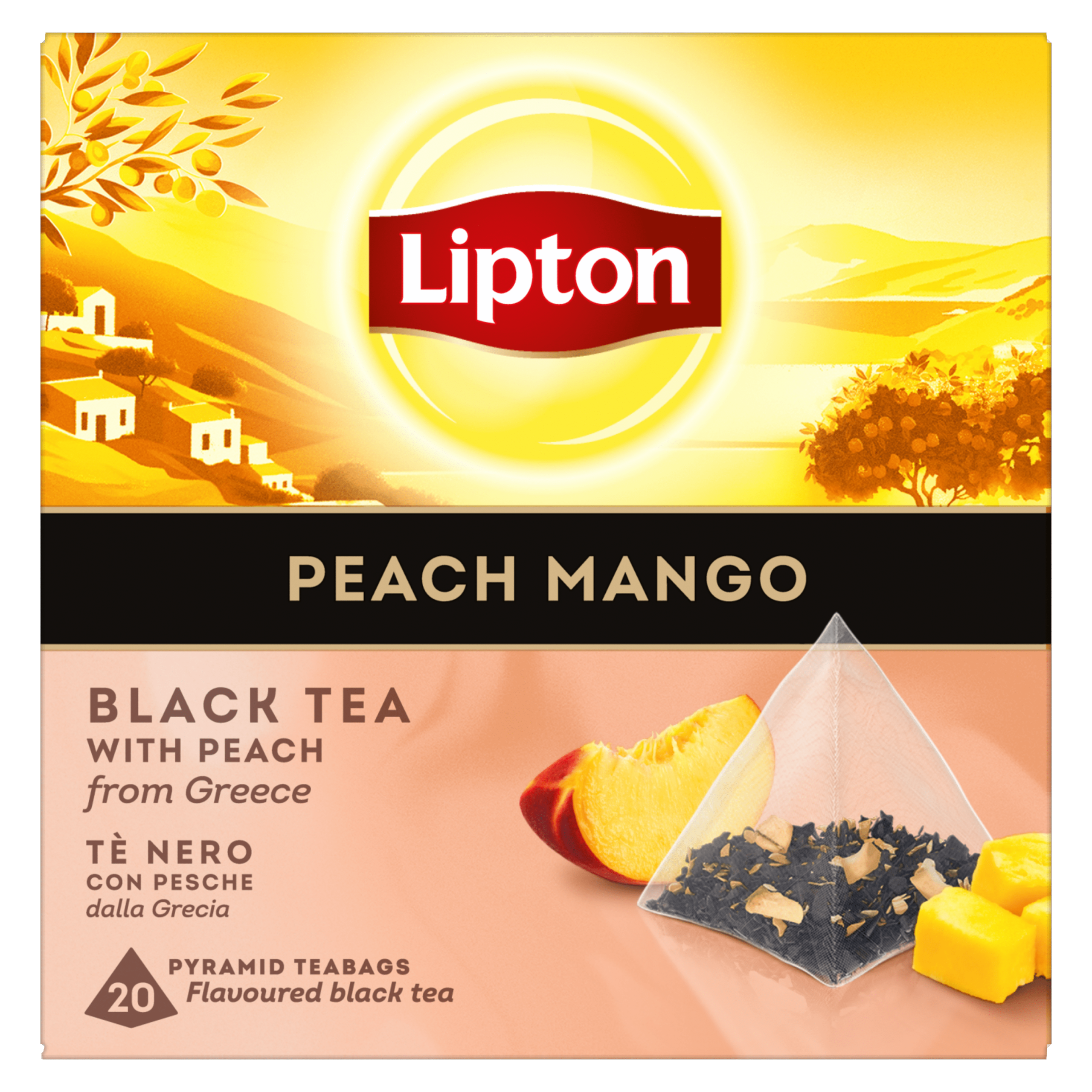 Geniet van de verfrissende en exotische smaak van Lipton Peach & Mango Zwarte Thee. Deze heerlijke combinatie van zoete perzik, abrikoos, en mango geeft je een moment van ontspanning. De piramidevormige theezakjes zijn gemaakt van biologisch afbreekbare materialen, zodat je niet alleen van een lekker kopje thee geniet, maar ook bijdraagt aan een duurzamere wereld. Laat het zakje 2-3 minuten trekken voor de ultieme smaakbeleving. Perfect voor elke gelegenheid!