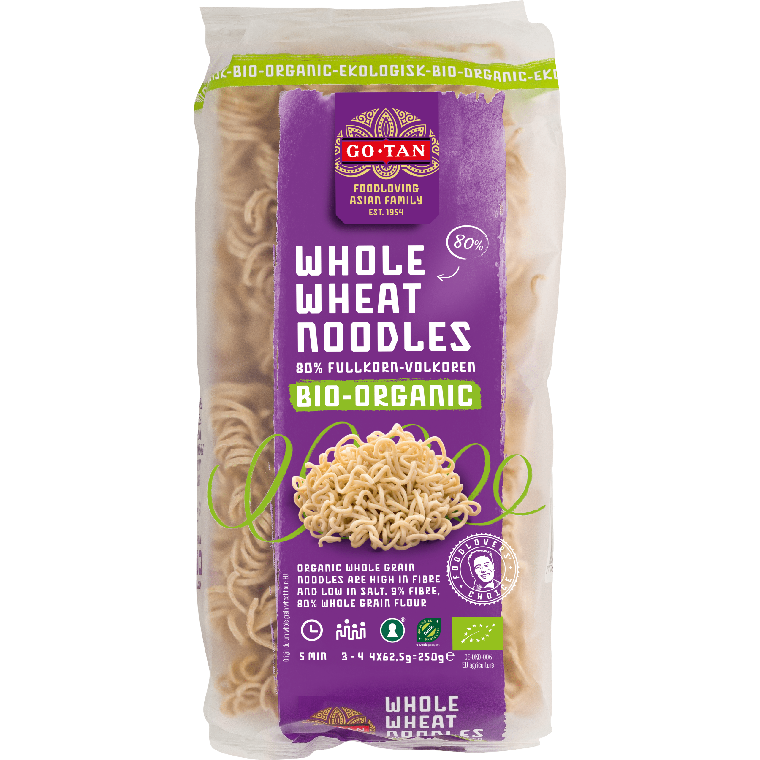 Geniet van de heerlijke en gezonde Go-Tan Volkoren Noodles, speciaal gemaakt van biologisch harde volkoren tarwemeel. Deze noedels zijn een voedzame keuze voor een Aziatische maaltijd, rijk aan vezels, vitaminen en mineralen. Met een laag zoutgehalte zijn de noedels niet alleen lekker, maar ook goed voor je gezondheid. Ideaal voor diverse bereidingen, van soepen tot stir-fry gerechten.