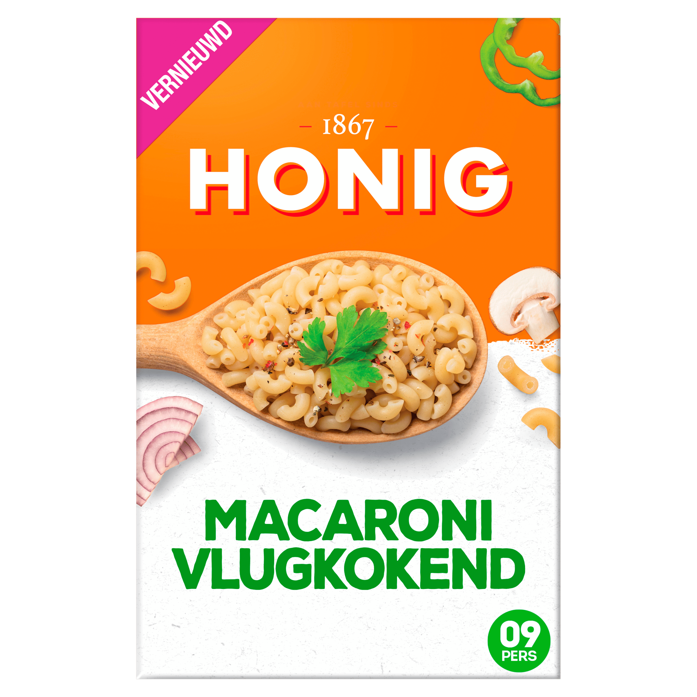 Honig Macaroni Vlugkokend is perfect voor een snelle pastamaaltijd en heeft een korte kooktijd van slechts 5 minuten. Deze macaroni is vegetarisch en met de kwaliteitsgarantie van Honig zet je eenvoudig jouw favoriete Italiaanse gerechten op tafel. Ideaal voor 8-9 personen.