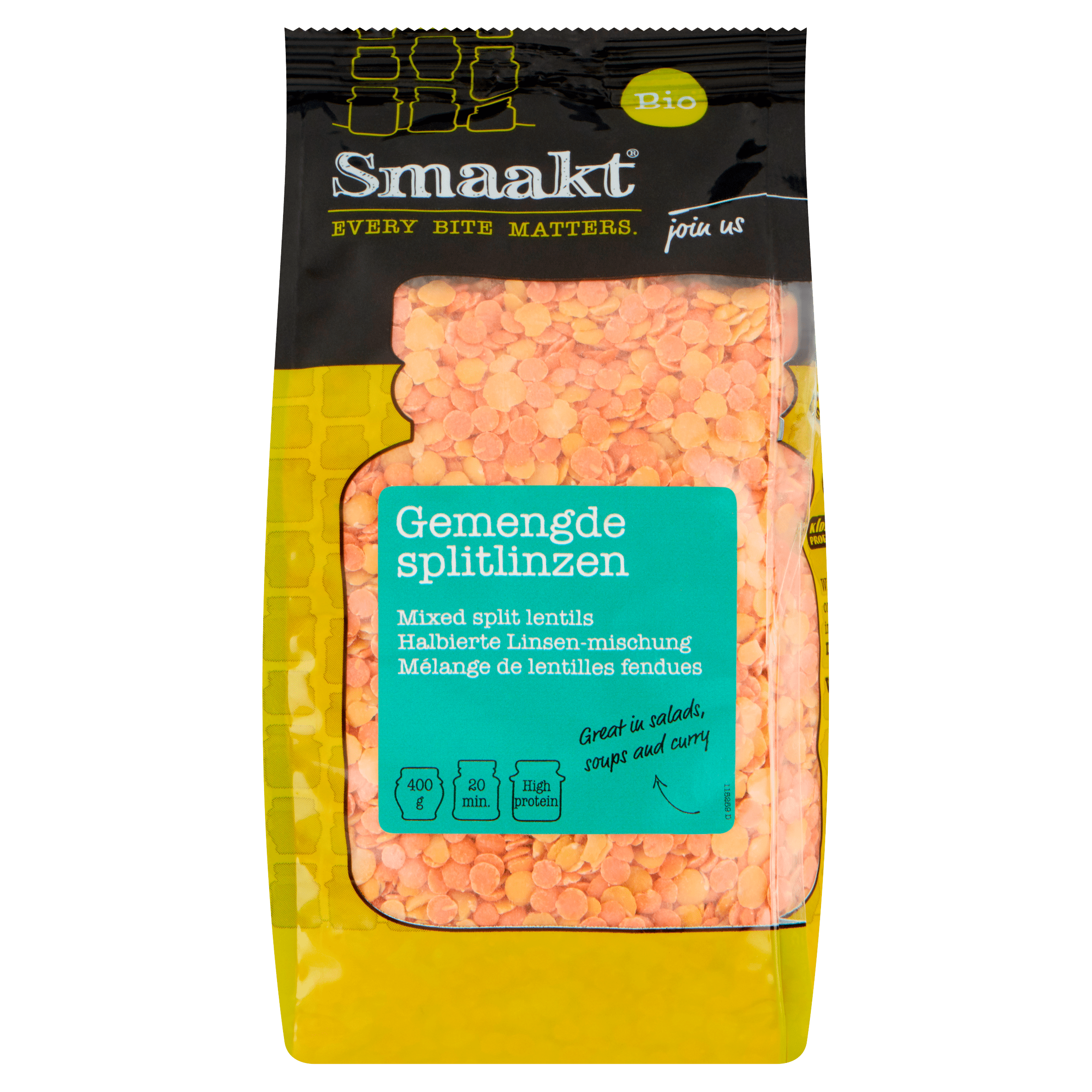 Geniet van de heerlijke en voedzame Smaakt gemengde splitlinzen, gemaakt van biologische rode en gele splitlinzen. Deze linzen zijn een perfecte toevoeging aan je maaltijden, rijk aan eiwitten en vezels. Ze zijn ideaal voor salades, soepen en curry’s, en heel eenvoudig te bereiden. Kook ze in slechts 20 minuten en maak kennis met een verantwoord eetpatroon waar zowel jij als de natuur van profiteren.