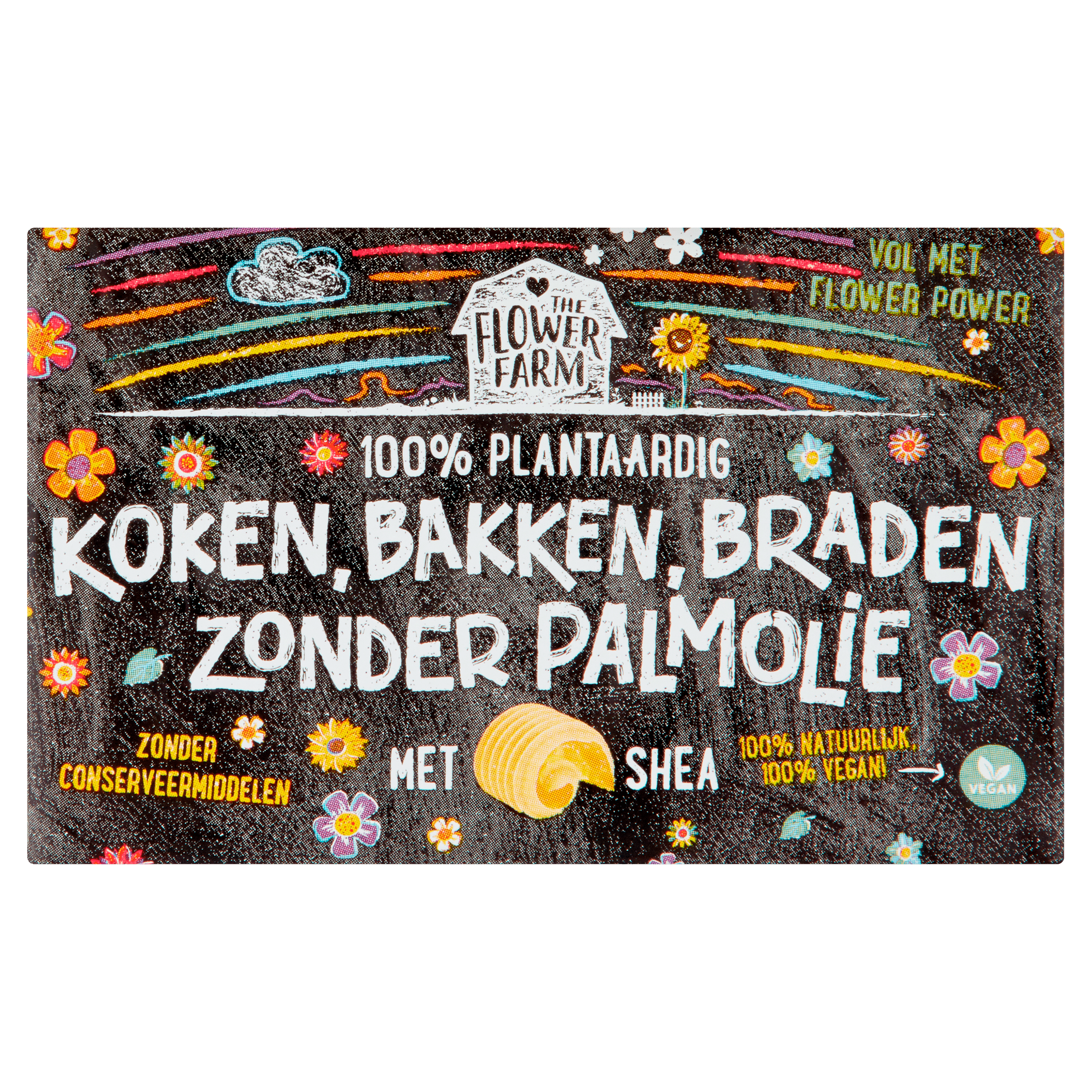Geniet van 100% plantaardige margarine zonder palmolie met The Flower Farm Bakken zonder palm. Deze heerlijke margarine, gemaakt met natuurlijke ingrediënten zoals shea boter uit de vrijgroeiende karitéboom, is perfect voor al je bak- en braadbehoeften. Vrij van conserveermiddelen en met een smaakvolle combinatie van plantaardige oliën en vetten, biedt het een verantwoord alternatief voor traditionele margarine. Ideaal voor een veganistische levensstijl.