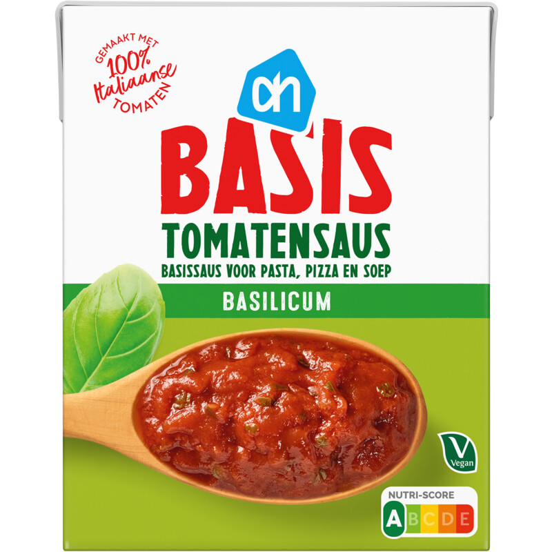 Ontdek de AH Basis Tomatensaus met 1% basilicum, een hoogwaardige saus gemaakt van Italiaanse tomaten. De tomaten worden kort verwarmd in hun eigen sap waardoor de saus een intens rijke smaak krijgt. Deze veelzijdige tomatensaus is perfect voor het maken van pastasauzen, soepen, stoofschotels of als pizzasaus. Geniet van de geweldige smaak van tomaat, basilicum en een hint van knoflook in elk gerecht.