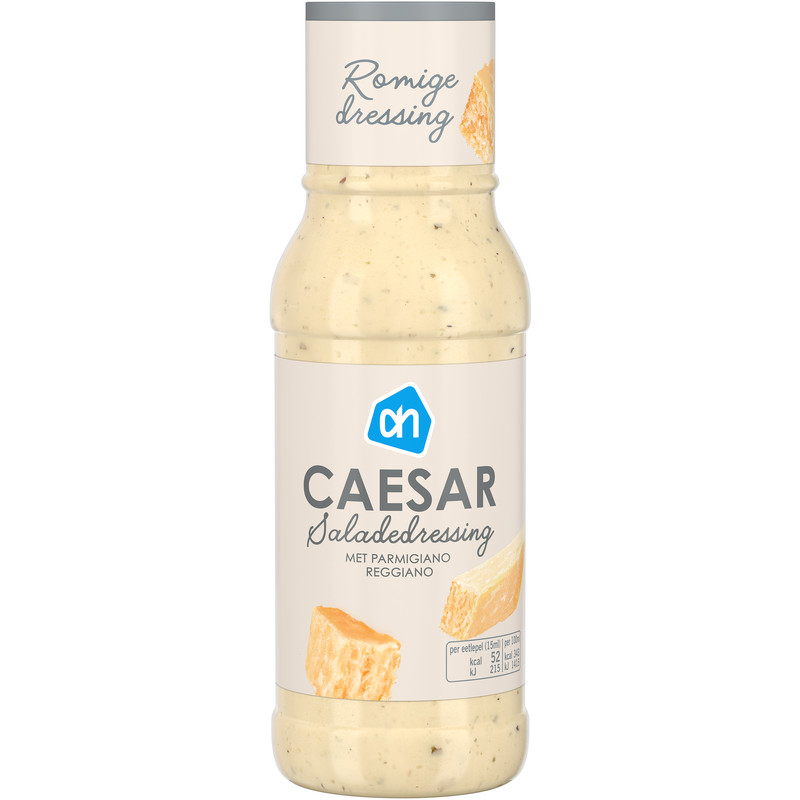 Geniet van de authentieke smaak van AH Caesar Dressing, verrijkt met 2% Parmigiano Reggiano BOB. Deze romige dressing is perfect voor een klassieke Caesar salad of als smaakmaker in diverse gerechten. Met zorg gemaakt, bevat deze dressing geen gluten en is het een heerlijke toevoeging aan je maaltijden.