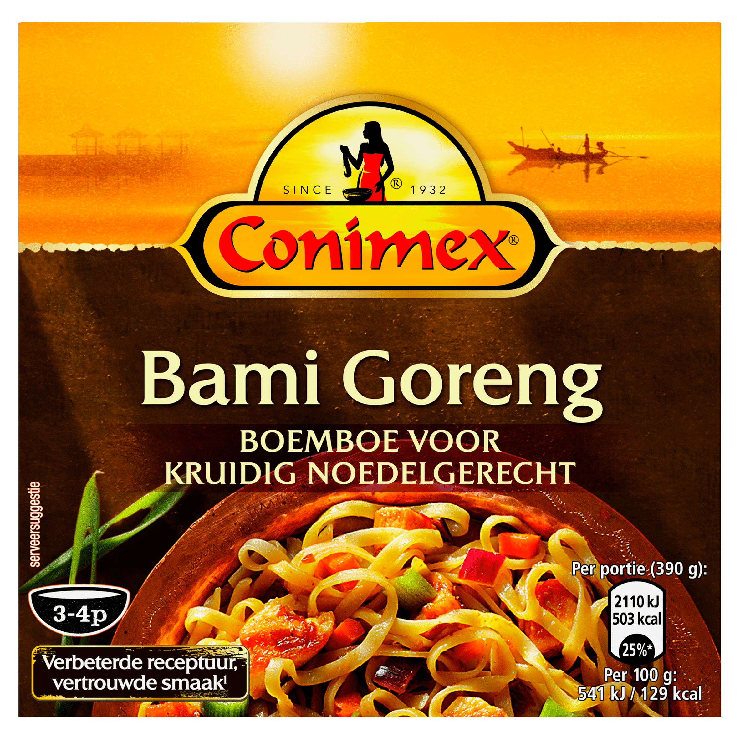 Conimex Bami Goreng Boemboe is de perfecte basis voor een authentiek en kruidig Indonesisch noedelgerecht. Deze rijke kruidenpasta, bereid met gember, knoflook en koriander, maakt het eenvoudig om een maaltijd voor 3 tot 4 personen te creëren in slechts 20 minuten. Voeg zelf bamigroenten, mie en wokolie toe voor een heerlijk resultaat. Geniet van de authentieke oosterse smaken en laat je inspireren door de veelzijdigheid van deze boemboe. Ideaal voor een snelle en smakelijke doordeweekse maaltijd.