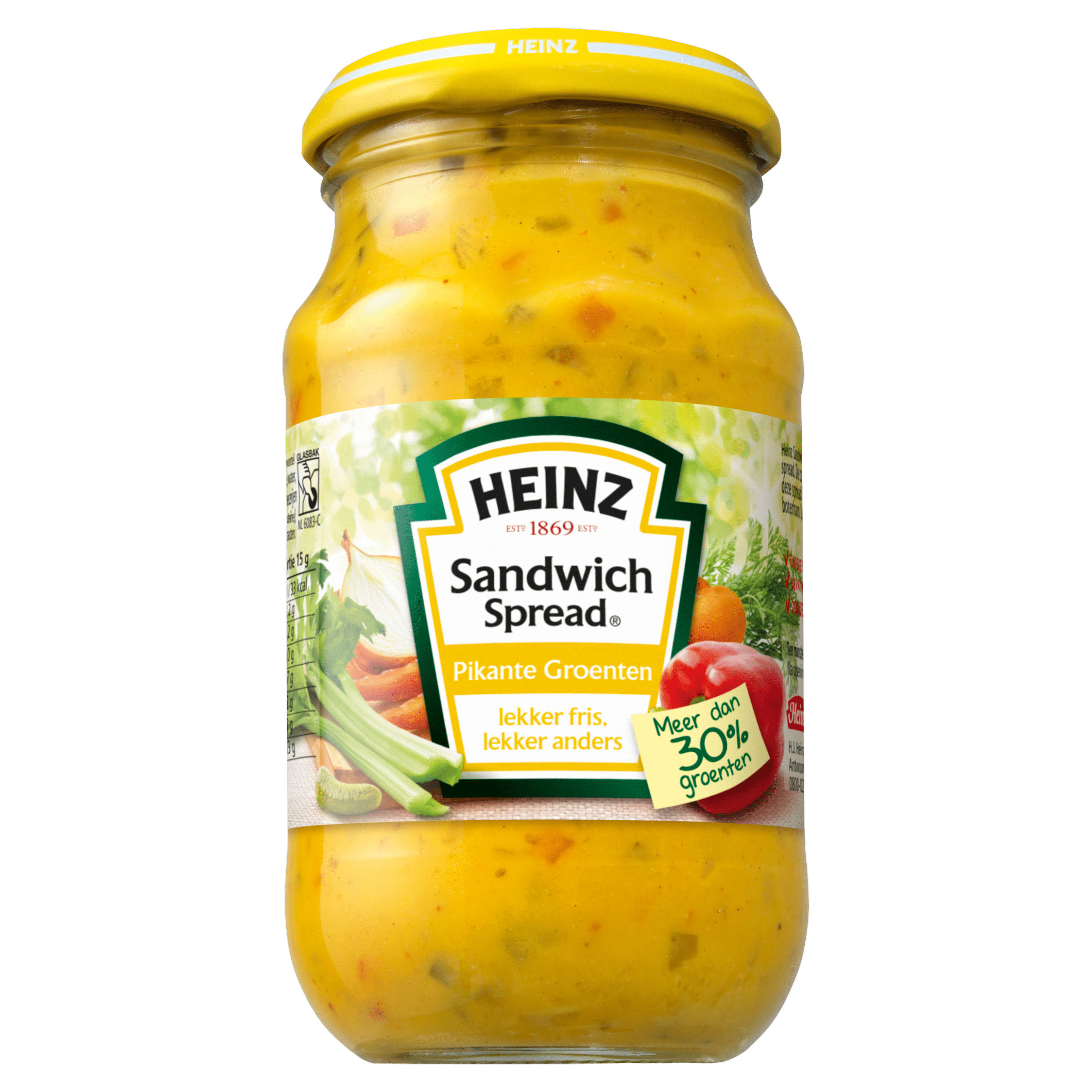 Heinz Sandwich Spread Pikante Groenten is een heerlijke lichte spread, boordevol knapperige stukjes groenten die zorgen voor een frisse en unieke smaakervaring. Deze spread is niet alleen lekker, maar bevat ook meer dan 30% aan groenten en geen conserveringsmiddelen. Perfect voor een verfrissende lunch of als alternatief voor traditionele broodbeleg. Maak je boterham of cracker leuker en gezonder met deze verrassende spread!