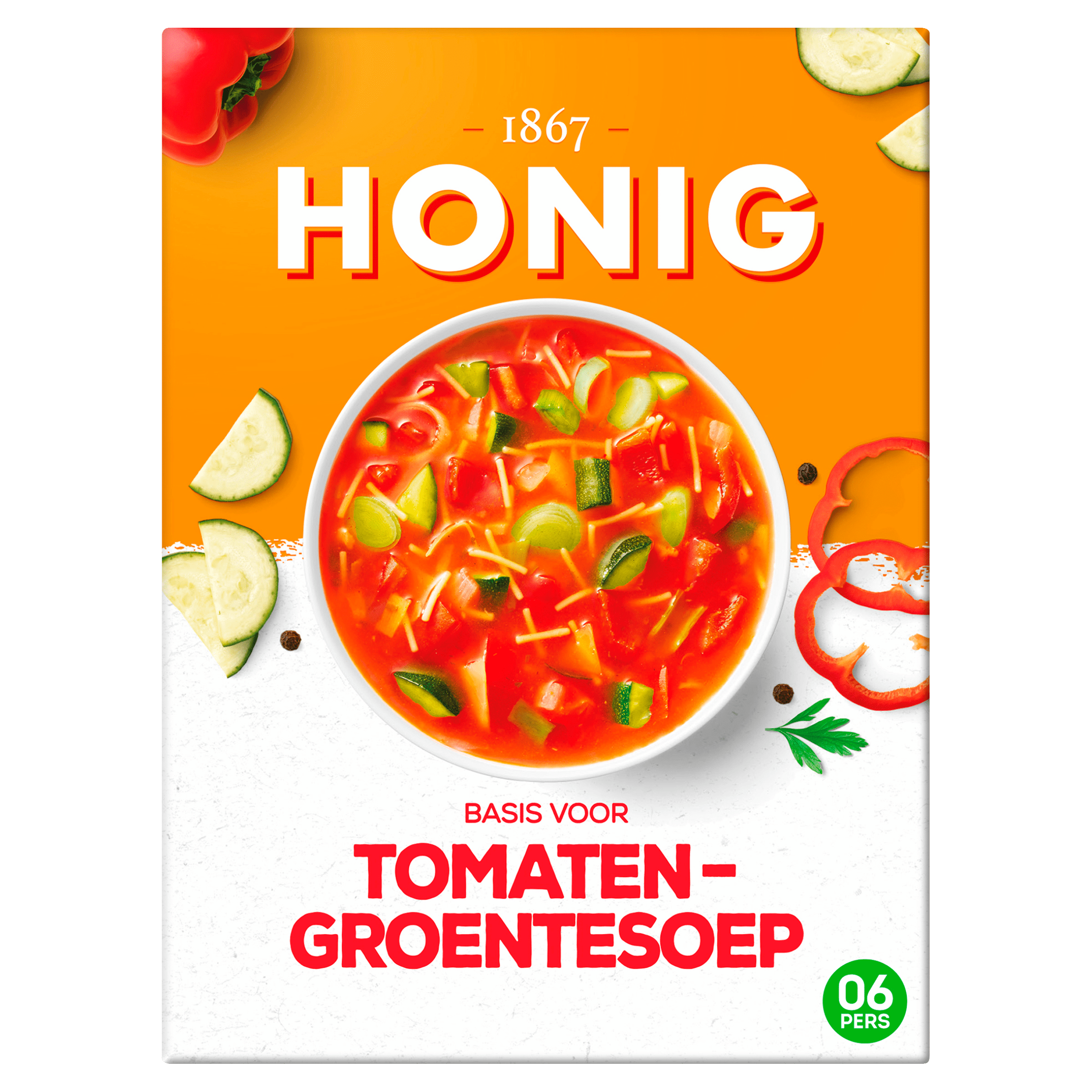 Geniet van een heerlijke en eenvoudige maaltijd met de Honig Basis voor Tomaten-groentesoep. Deze smakelijke soepbasis bevat een combinatie van fijngehakte groenten en vermicelli, perfect voor een snelbereide maaltijd voor 6 personen. Binnen slechts 10 minuten staat een zelfgemaakte tomatensoep op tafel die je kunt variëren met verse ingrediënten zoals Italiaanse roerbakgroenten en tomaten. Voeg voor een unieke twist specerijen zoals ras el hanout toe. Ideaal voor iedereen die houdt van een voedzame en smaakvolle soep.