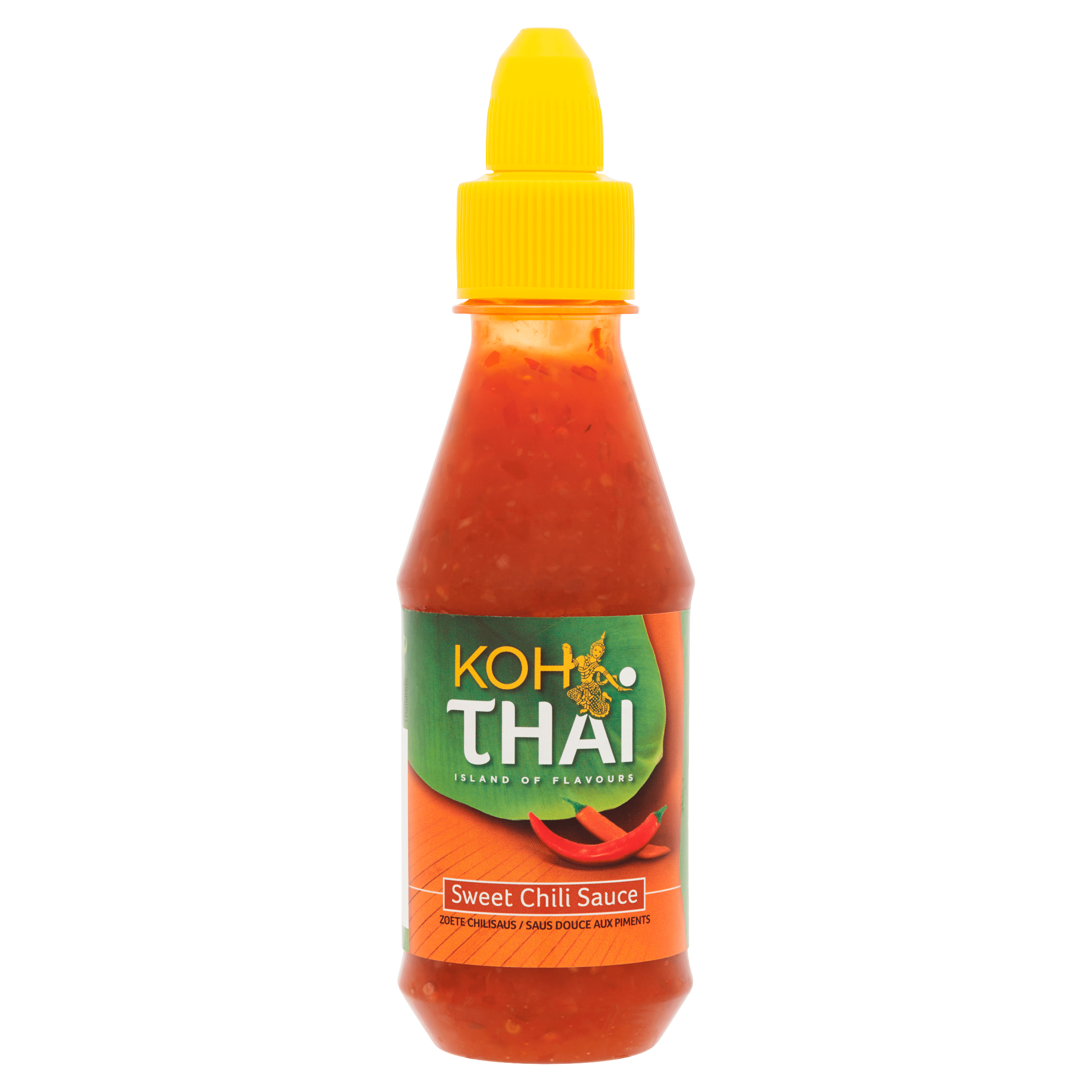Ontdek de heerlijke Koh Thai Zoete Chili saus, een veelzijdige dipsaus en smaakmaker. Perfect voor bij kip, loempia’s of in marinades. Deze saus brengt de smaken van Thailand direct naar jouw tafel. Vergeet niet, na opening is de saus beperkt houdbaar in de koelkast.