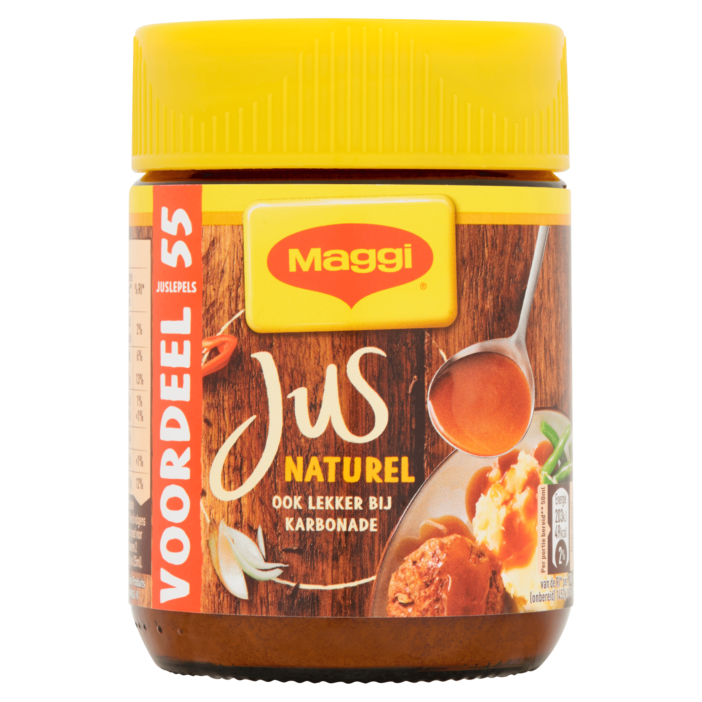 Met de MAGGI jus naturel maak je in een handomdraai een heerlijke jus voor bij aardappelen, puree of stamppot. Dit juspoeder van hoge kwaliteit is eenvoudig te bereiden: smelt gewoon wat boter, voeg water en juspoeder toe en je hebt in een paar stappen een smakelijke jus. Perfect voor elke maaltijd.
