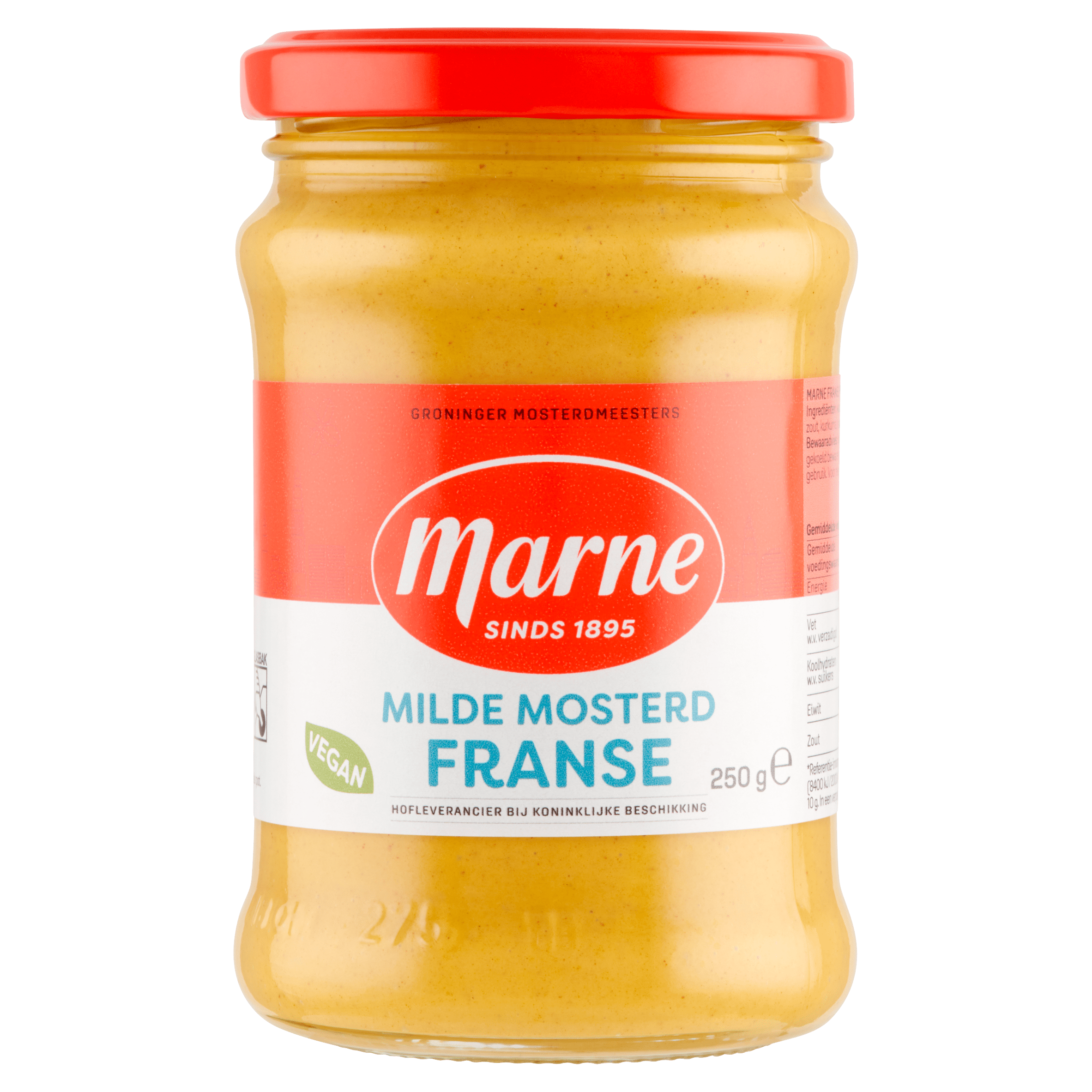 Geniet van de milde en smaakvolle Marne Franse mosterd, perfect voor bij snacks en zowel rood als wit vlees. Deze mosterd biedt een uitstekende prijs-kwaliteitverhouding en is vervaardigd in Nederland. Voor gebruik goed roeren en koel en donker bewaren. Een onmisbare smaakmaker voor elke keuken!