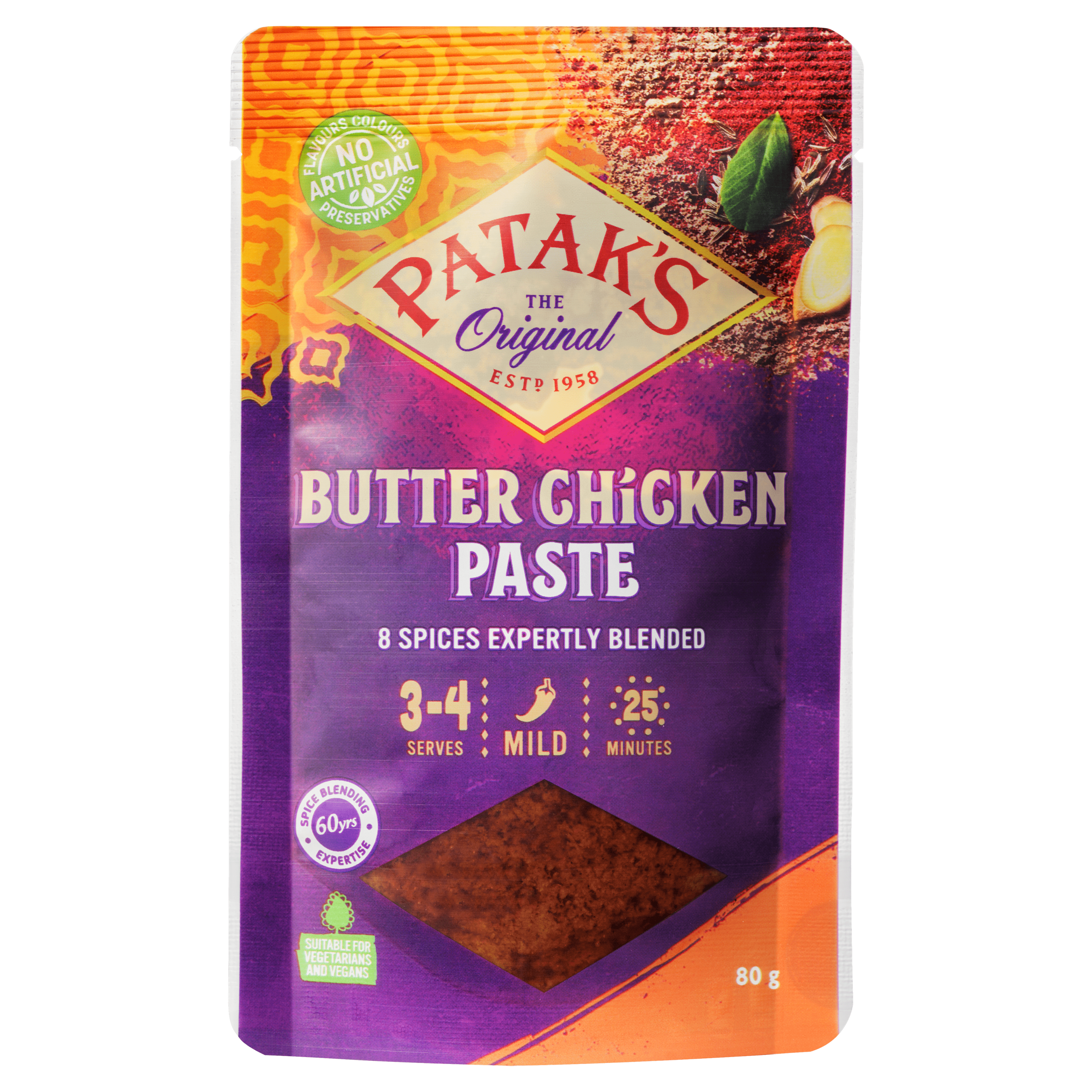 Geniet van de authentieke smaken van India met Patak’s Butter Chicken kruidenpasta. Deze vegan en vegetarische currypaste is perfect voor het creëren van een rijke en romige saus in een handomdraai. Voeg eenvoudig wat kip of groenten toe voor een smaakvolle maaltijd, klaar in slechts 20 minuten!
