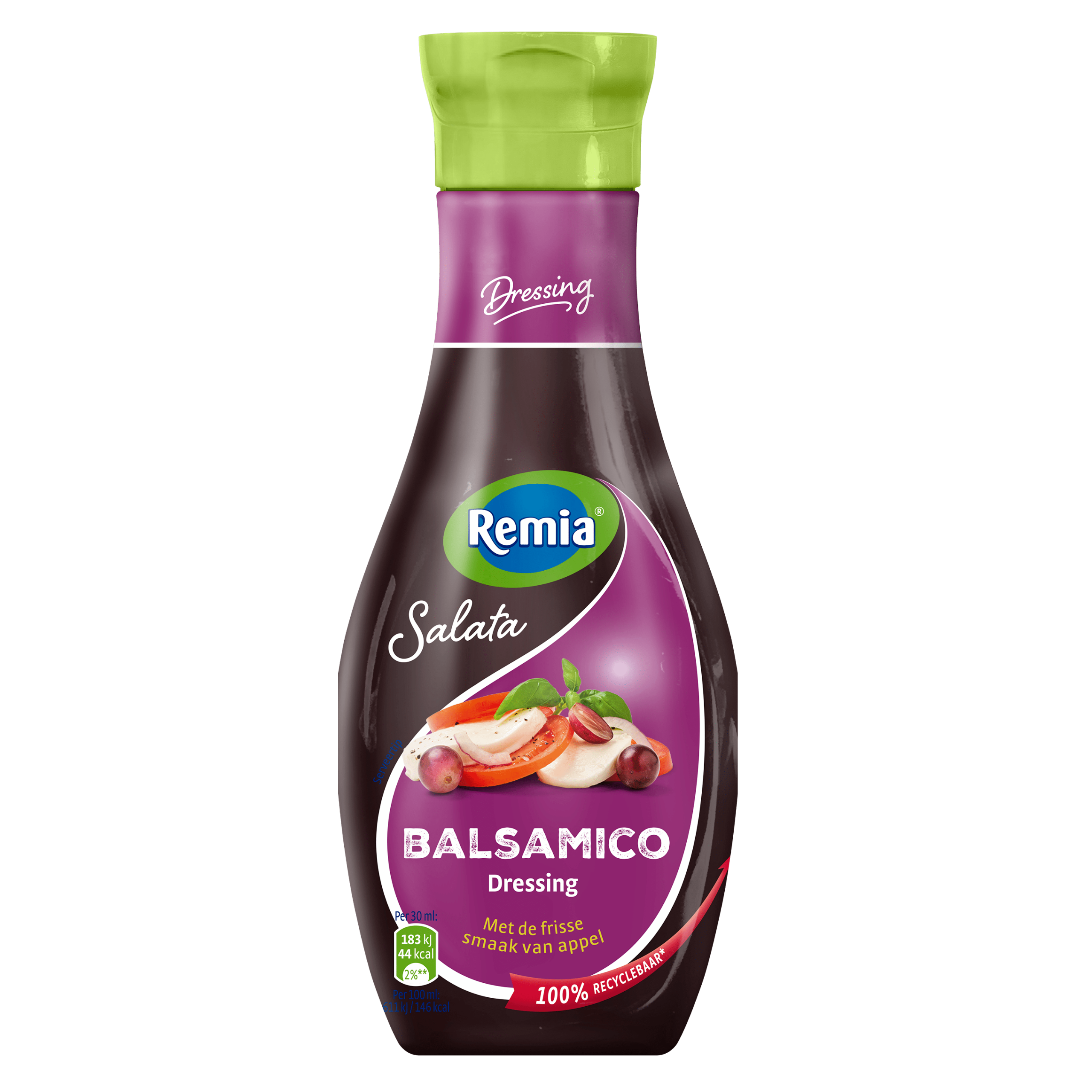 Geniet van de heerlijke smaak van Remia Salata Balsamico appel dressing, een perfecte mix van balsamico azijn, appelsap en natuurlijke ingrediënten. Deze dressing is vrij van kunstmatige kleur-, geur- en smaakstoffen, waardoor je verzekerd bent van een puur en smaakvol product. Ideaal voor salades en marinades, en gemakkelijk te bewaren in de koelkast na opening.