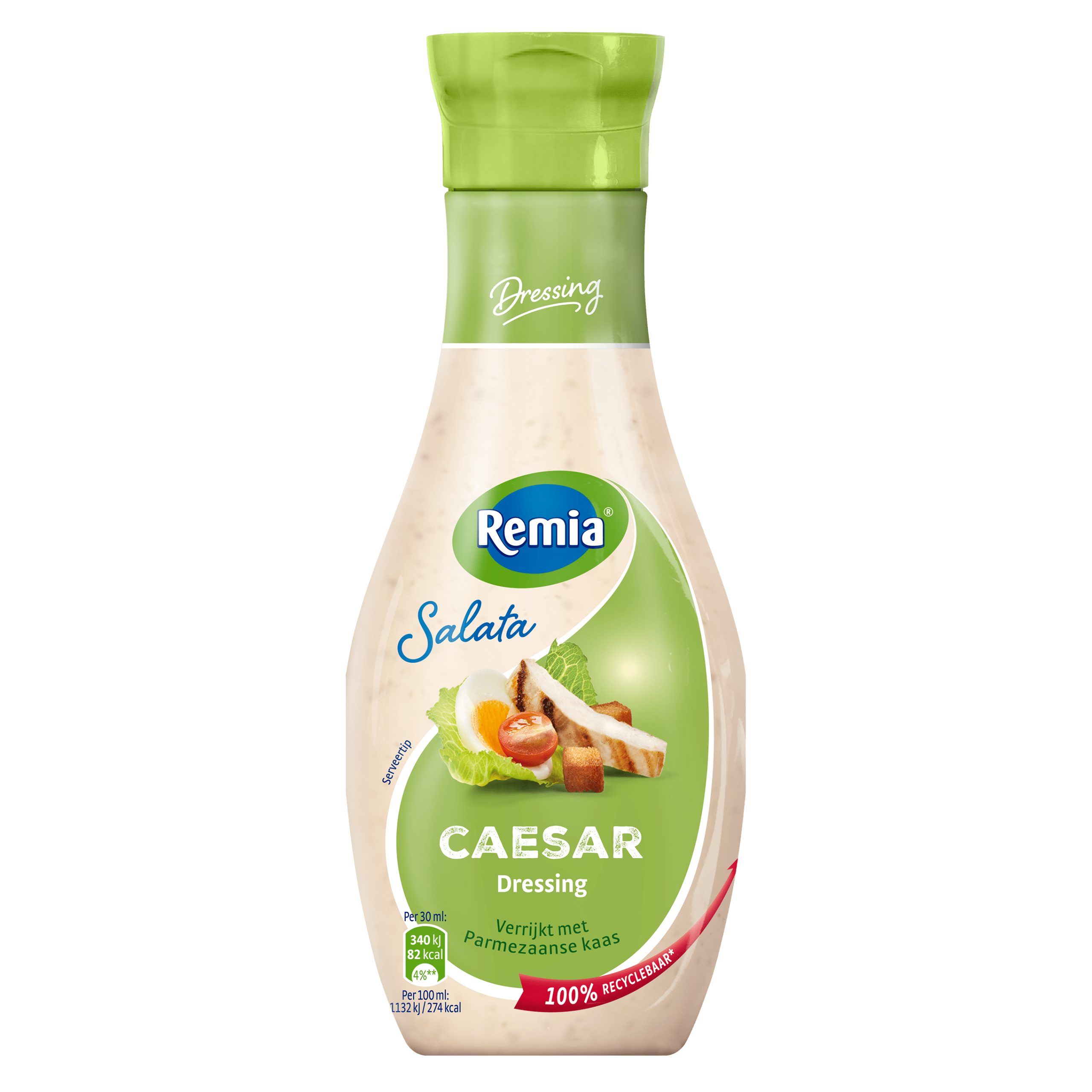 Geniet van de smaakvolle Remia Salata Caesar dressing, verrijkt met Parmezaanse kaas. Deze dressing is perfect voor het op smaak brengen van salades en bevat geen kunstmatige kleur-, geur- en smaakstoffen. Bewaar de dressing na opening in de koelkast voor optimaal gebruik.