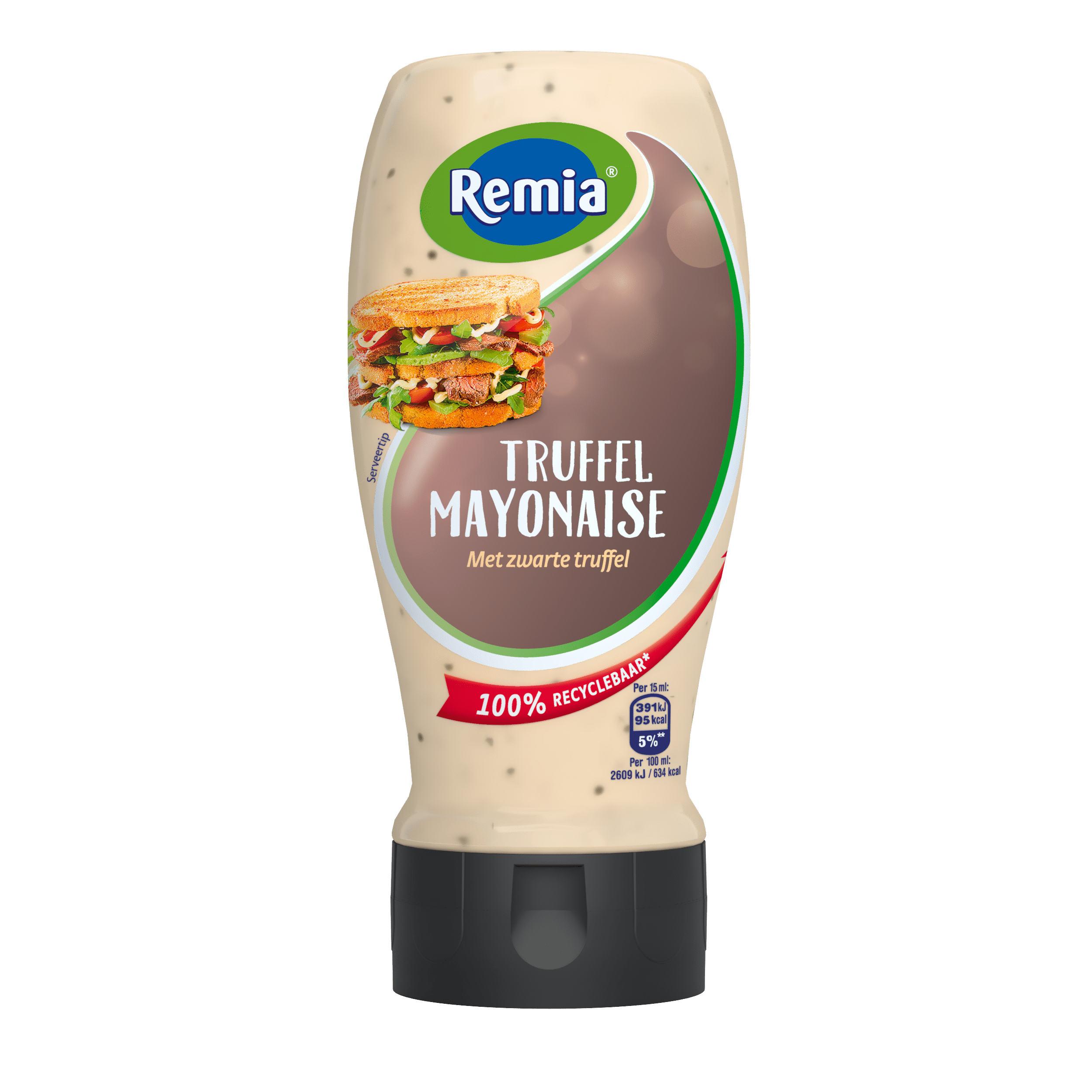 Remia Truffel Mayonaise is een luxe, hartige mayonaise waarin échte zwarte truffel is verwerkt. Deze rijke en romige mayonaise voegt een verfijnde smaak toe aan al je gerechten. Perfect voor bij de borrel of als dip voor snacks, door salades of als smaakmaker in warme gerechten. Bewaar deze unieke mayonaise koel en droog na opening.