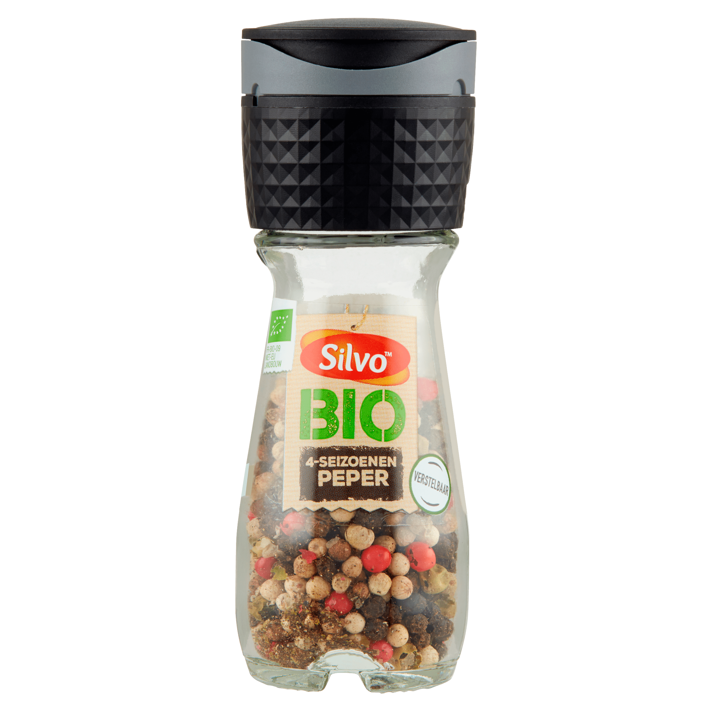 De Silvo 4 seizoenen peper molen bevat een heerlijke mix van zwarte, witte, groene en roze peper, allemaal afkomstig van biologische oorsprong. Deze veelzijdige en duurzame mix brengt smaak en aroma aan al je gerechten. Of je nu fijn, middelfijn of grof wilt malen, deze molen biedt het resultaat dat je zoekt. Bewaar de molen op een koele, droge en donkere plek om de kwaliteit te behouden.