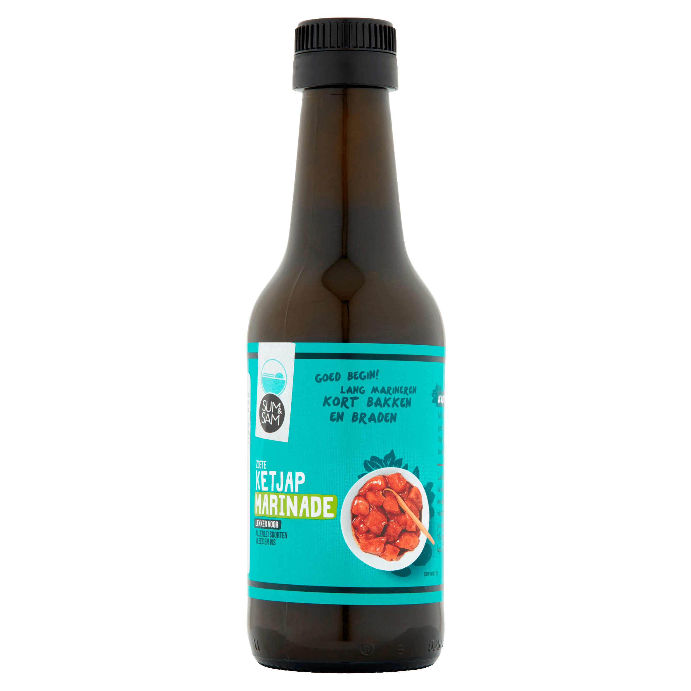 De Sum en Sam Ketjap Marinade is een heerlijke, kruidige marinade die perfect is voor het marineren van vlees of vis. Deze vegan en vegetarische marinade zorgt voor een rijke smaak en maakt elke maaltijd bijzonder. Marineren met deze ketjap marinade is eenvoudig; laat het vlees of vis minstens 20 minuten intrekken voor de beste smaak. Ideaal voor een snelle en smaakvolle bereiding in de pan of op de grill.