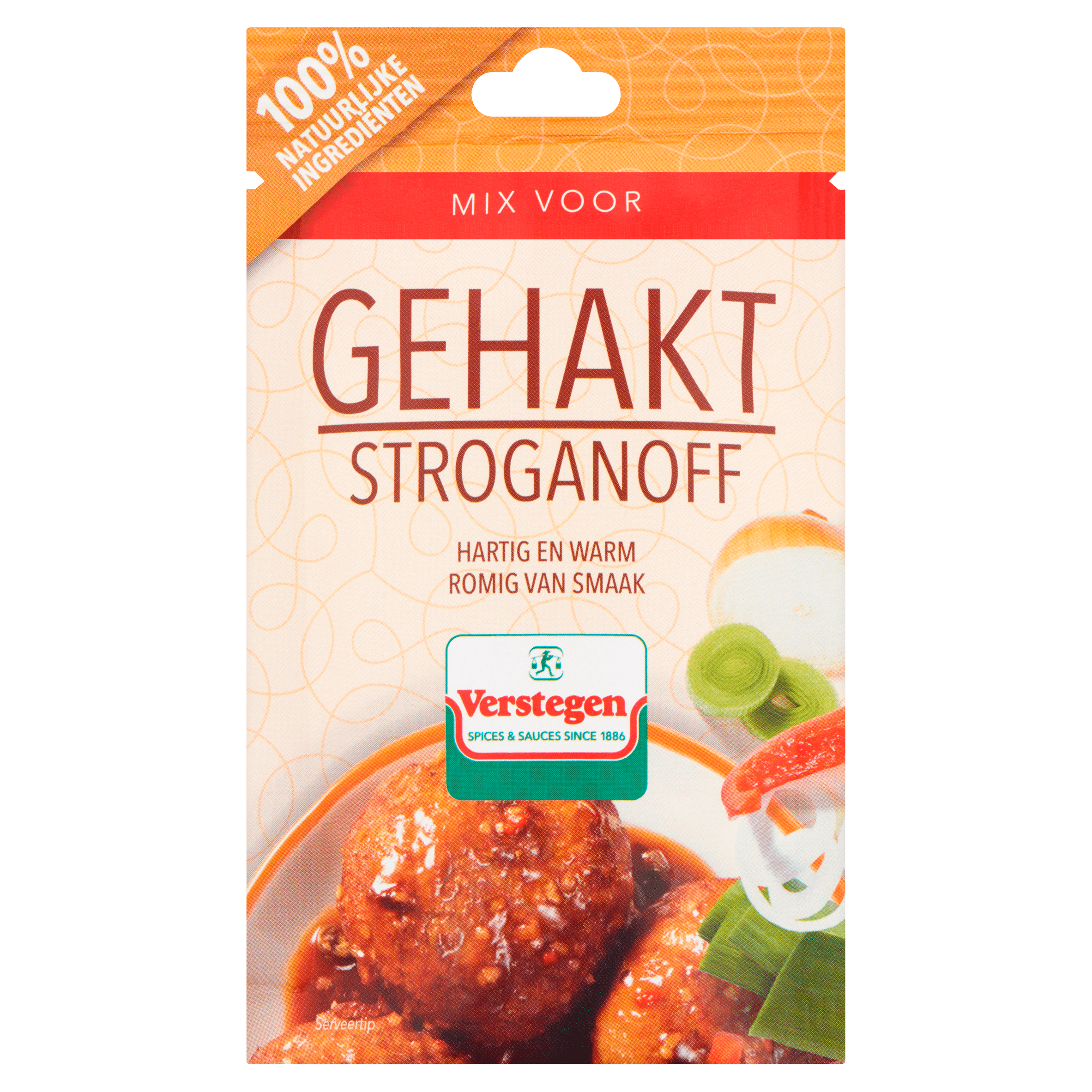 Geef je gerechten een heerlijke smaak met de Verstegen Mix voor gehakt stroganoff. Deze smaakvolle mix is perfect voor het bereiden van authentieke gehaktballen, ideaal voor 4 personen. Meng de mix met 500 g gehakt en eventueel een ei, en bak de ballen in slechts 20 Ã 25 minuten tot ze mooi bruin en gaar zijn. Bewaar de mix op een koele, droge en donkere plek voor optimale versheid.