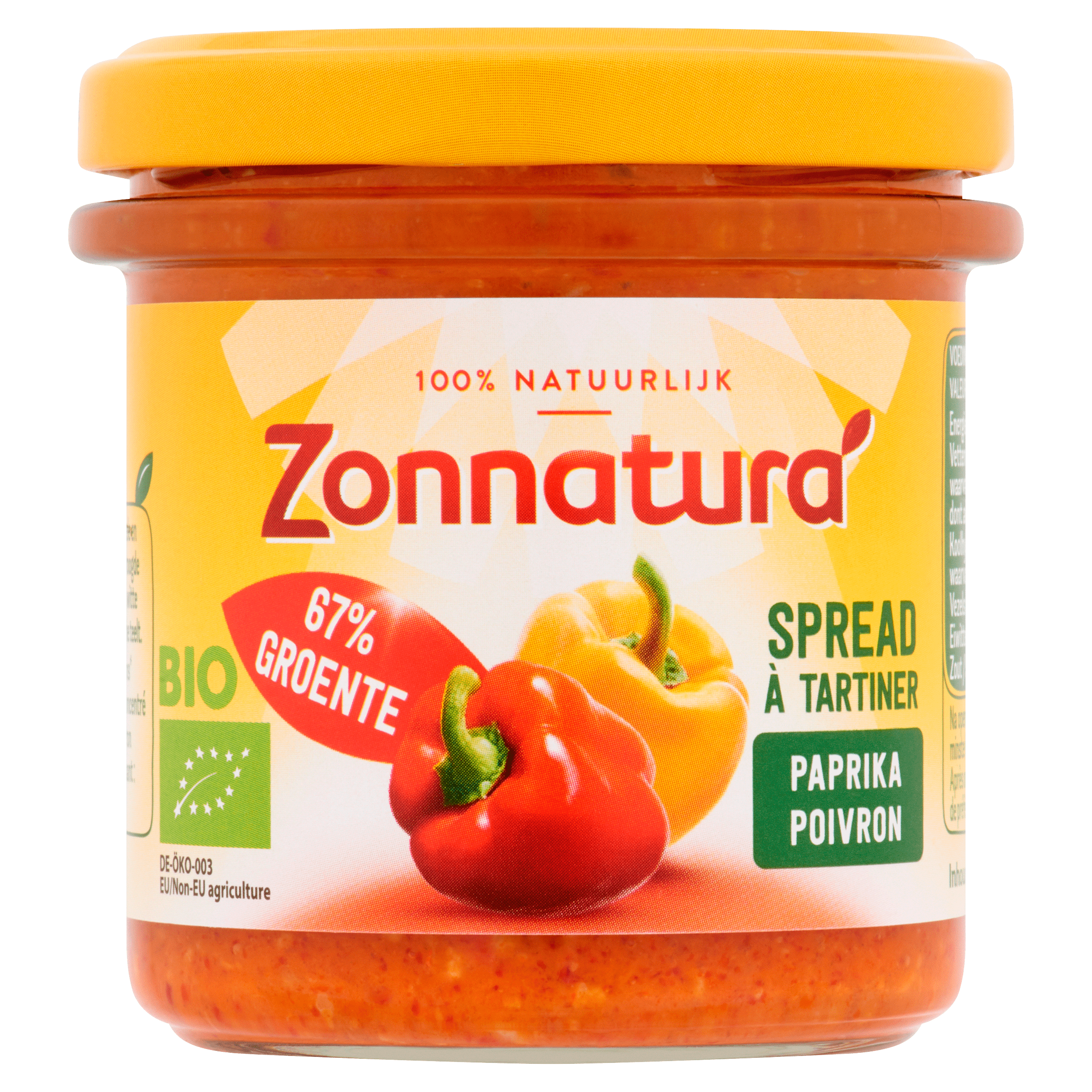 Geniet van de heerlijke Zonnatura Groentespread met paprika, gemaakt van biologische ingrediënten. Deze smaakvolle spread bevat 62% paprika in combinatie met zonnebloempitten en een hint van agavesiroop voor een licht zoete smaak. Perfect voor op brood, door salades of als dip bij snacks. Na openen is deze groentespread beperkt houdbaar, dus geniet snel van deze gezonde lekkernij!