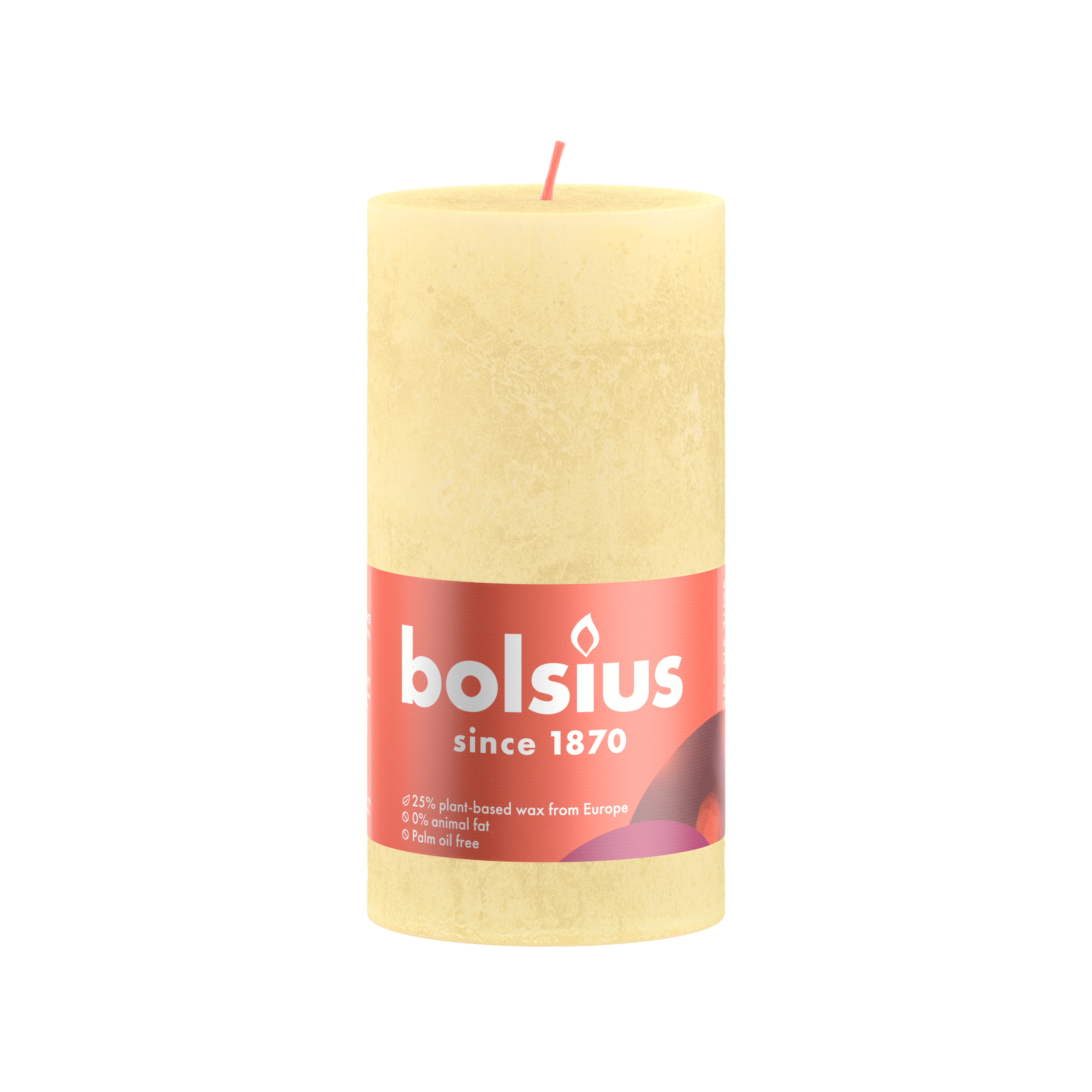 Voeg een vleugje warmte en gezelligheid toe aan je huis met deze Bolsius Stompkaars in de zachte butter yellow kleur. Met een hoogte van 13 cm en een brandduur van wel 60 uur, zorgt deze rustieke kaars voor een unieke ambiance. Gemaakt van natuurlijke vegan was, zonder palmolie, is deze kaars een bewuste keuze voor zowel mensen als de planeet. Combineer met andere kaarsen uit de Bolsius collectie voor een prachtig geheel.