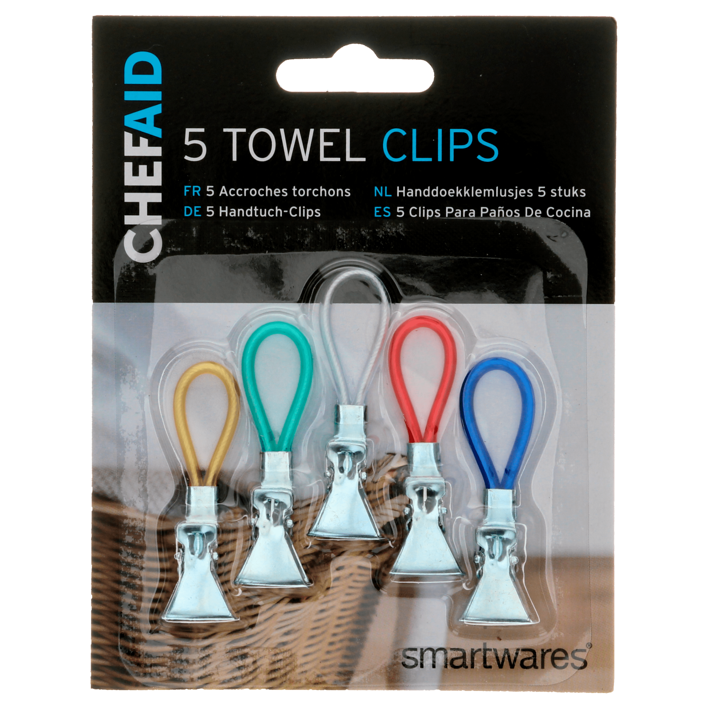 De Chef Aid Handdoekklemlusjes zijn een handige oplossing voor het ophangen van handdoeken. Met deze praktische klemlusjes blijven je handdoeken altijd netjes en binnen handbereik. Ideaal voor gebruik in de keuken of badkamer, en eenvoudig te bevestigen aan een haak of ophangpunt.