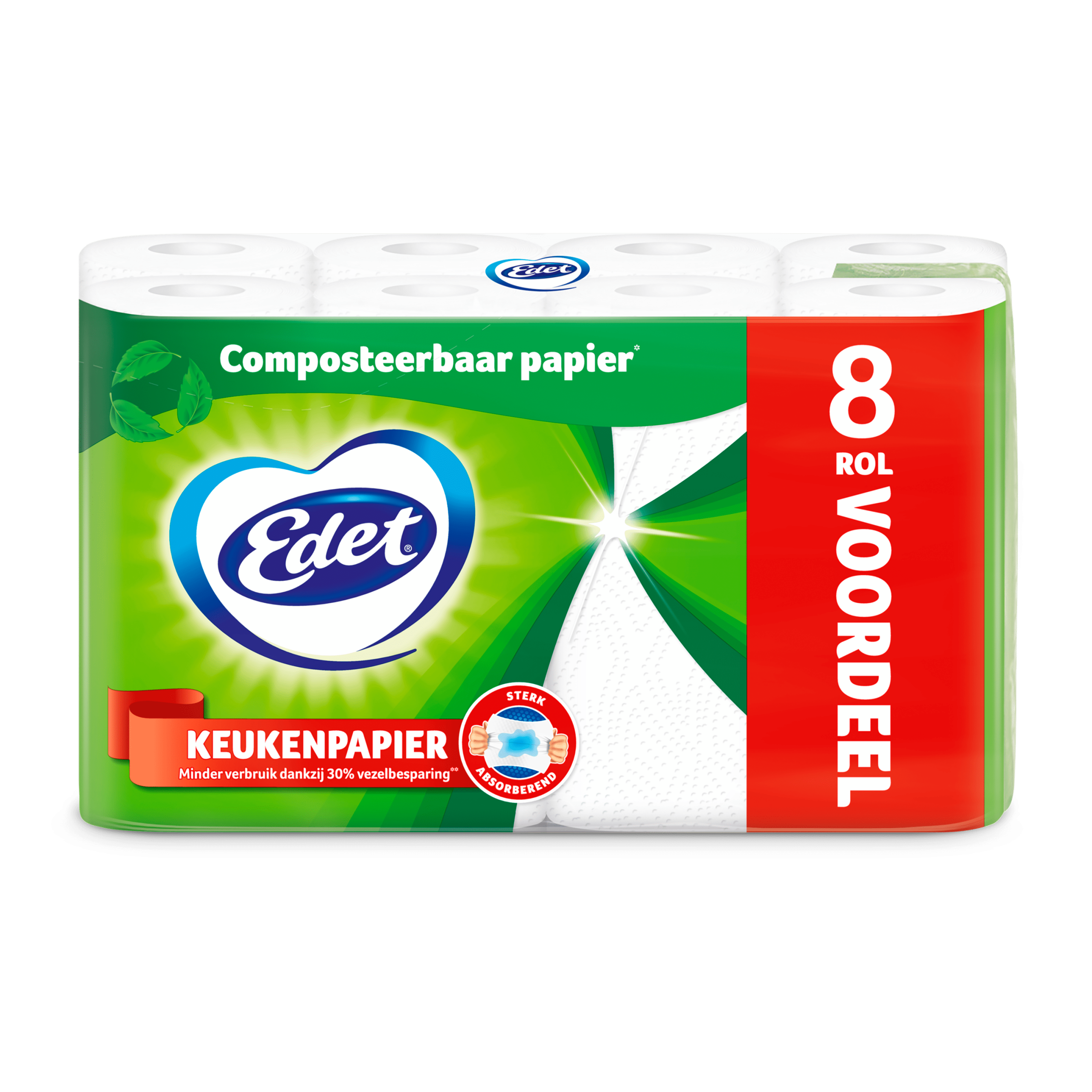 Het Edet Keukenpapier Compost is een sterk en duurzaam alternatief voor traditioneel keukenpapier. Dit keukenpapier is composteerbaar en biedt een goede absorptie voor al je schoonmaakbehoeften. Perfect voor het opruimen van gemorste vloeistoffen en het drooghouden van je keuken. Geproduceerd in Duitsland en verpakt per zak van 8 rollen.