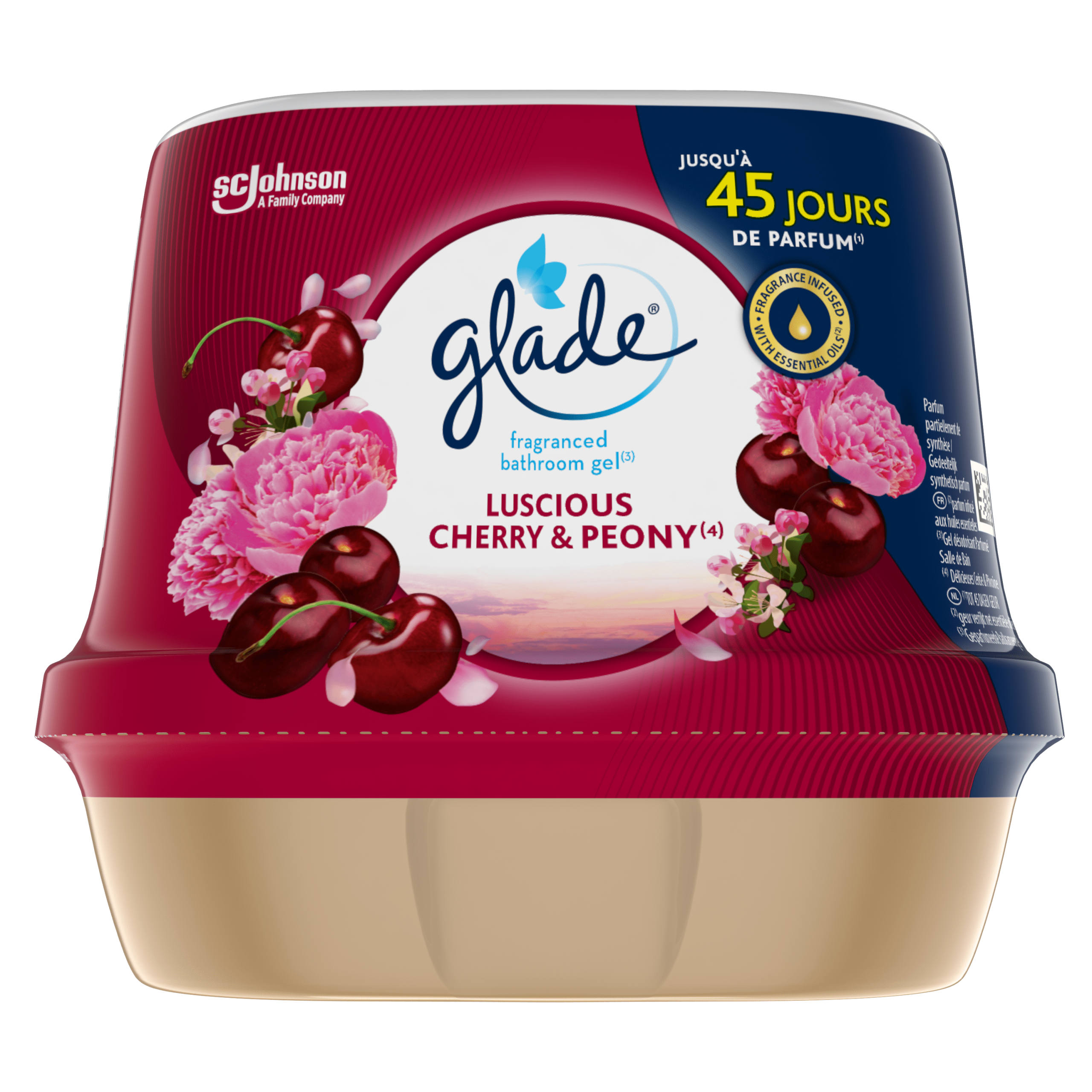Breng de heerlijke en verfrissende geur van rijpe kers en pioenroos in huis met de Glade by Brise Bathroomgel. Deze gel geeft tot maar liefst 45 dagen een continue geur af, verrijkt met essentiële oliën die de zintuigen prikkelen. Glade, als expert in geuren, biedt een breed assortiment om elke gelegenheid sfeervol te maken.