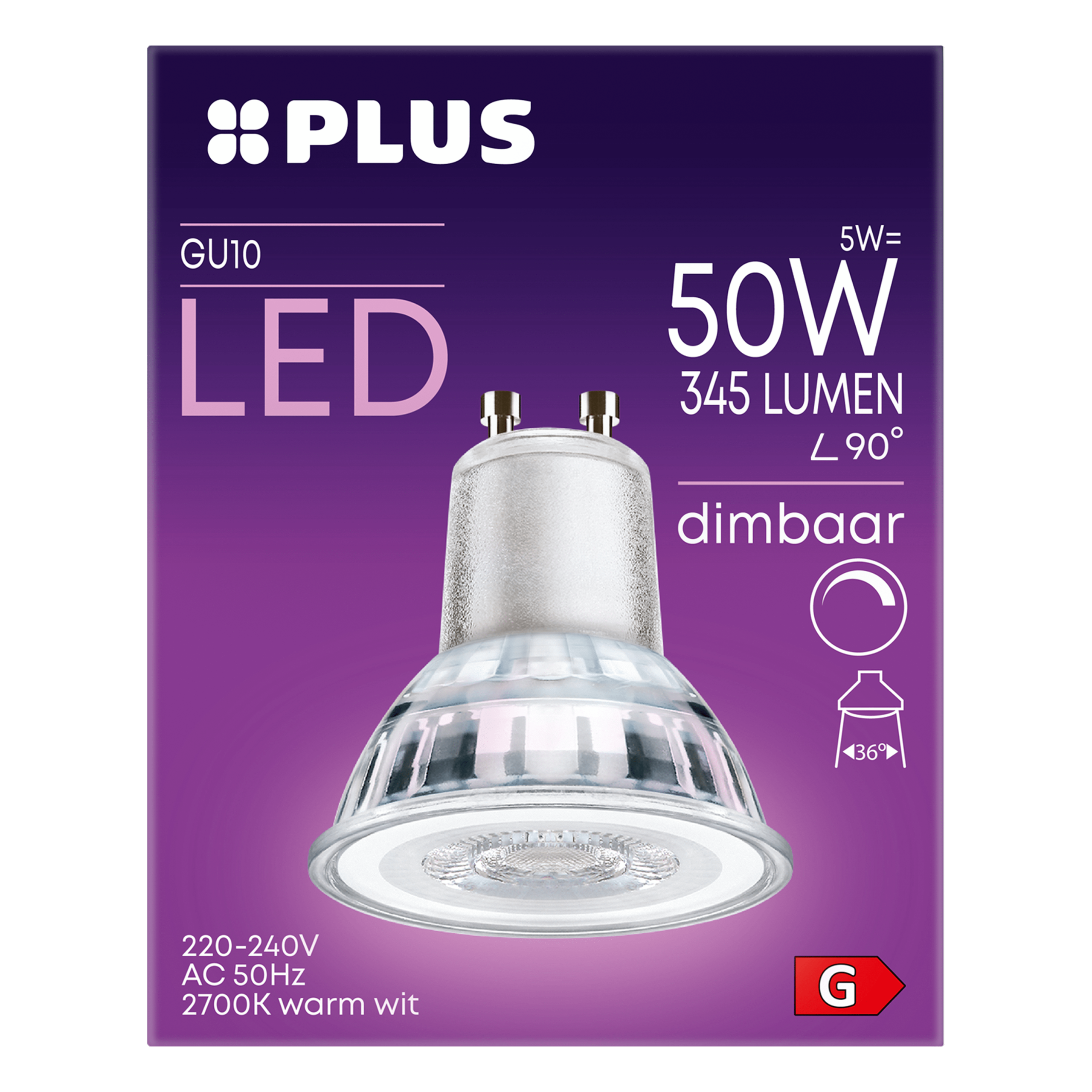De PLUS LED 50W GU10 dimbare lamp biedt een schitterend warmwit licht en is de ideale keuze voor accentverlichting. Deze energiezuinige LED-lamp heeft een levensduur die de traditionele matte lampen overtreft, waardoor je niet alleen verlicht, maar ook bespaart. Dankzij het snelle opwarmtijd van 0 seconden geniet je onmiddellijk van helder licht.