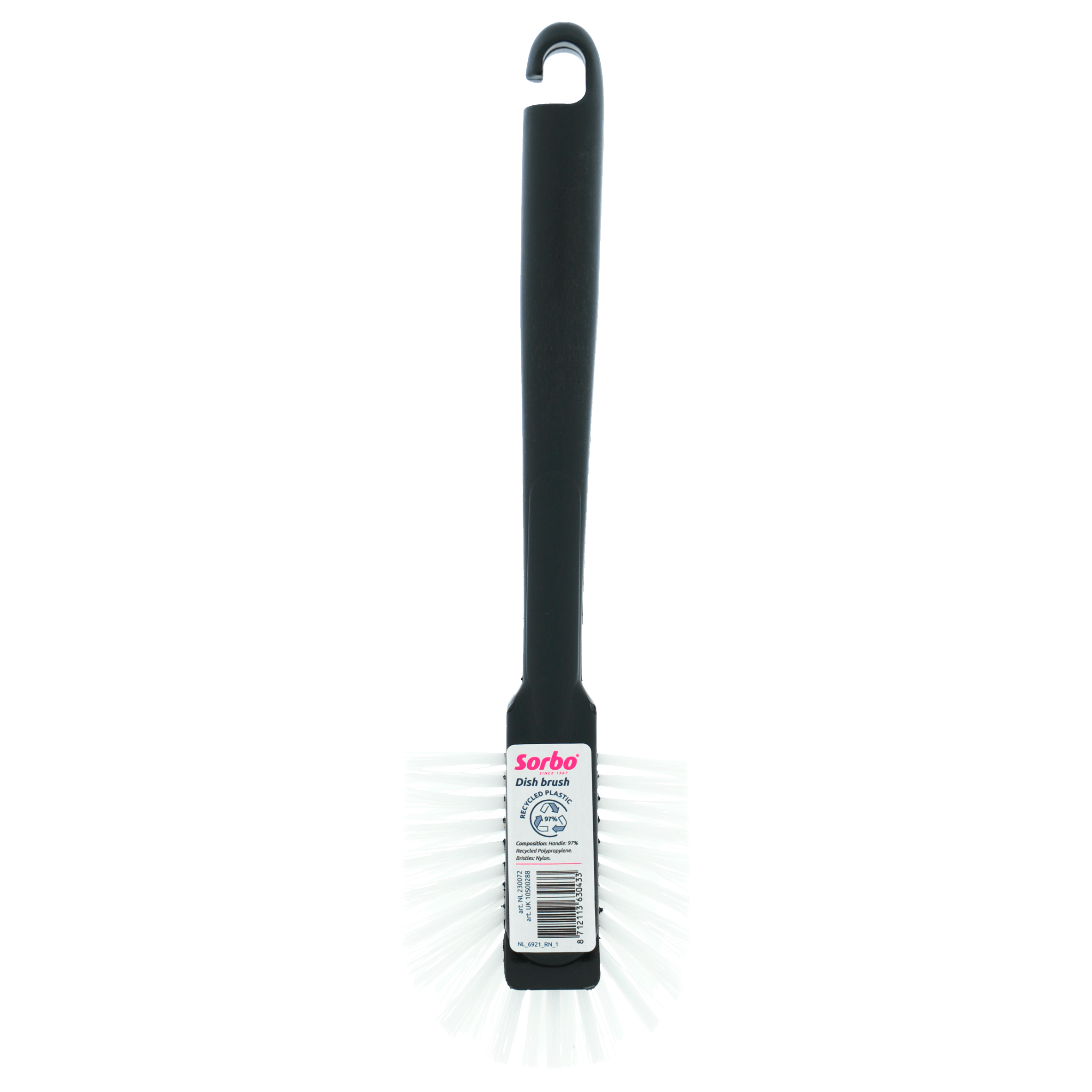 Maak je dagelijkse vaat gemakkelijk schoon met de Sorbo Afwasborstel, gemaakt van gerecycled kunststof. Deze duurzame borstel heeft slijtvaste nylon haren die etensrestjes effectief verwijderen. Dankzij het hygiënische ontwerp, dat bacteriën en vuil vermindert, en de extra grip door de inkepingen in het handvat, is deze afwasborstel perfect voor gebruik in natte omstandigheden. Hang hem na gebruik eenvoudig op aan het haakje om goed te drogen.