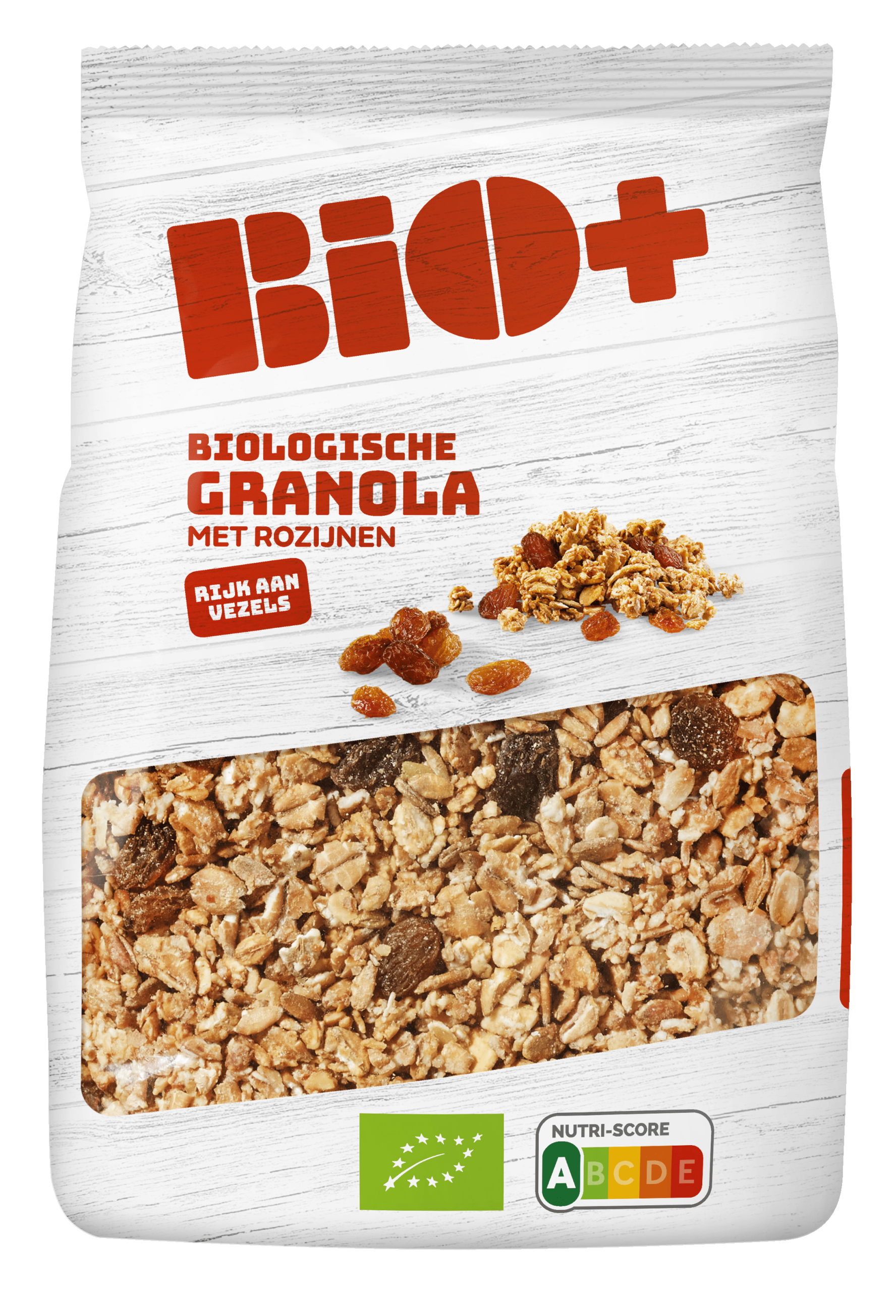 Geniet van de heerlijke smaak van onze BIO+ Granola met volkoren granen en rozijnen. Deze biologische gebakken muesli is niet alleen een voedzaam ontbijt, maar ook perfect als snack of toevoeging aan je favoriete yoghurt. Met een aantrekkelijke Nutri-Score C en een veganistisch recept is het een geweldige keuze voor een gezonde levensstijl. Bewaar de granola op een koele, droge en donkere plaats om de versheid te behouden.