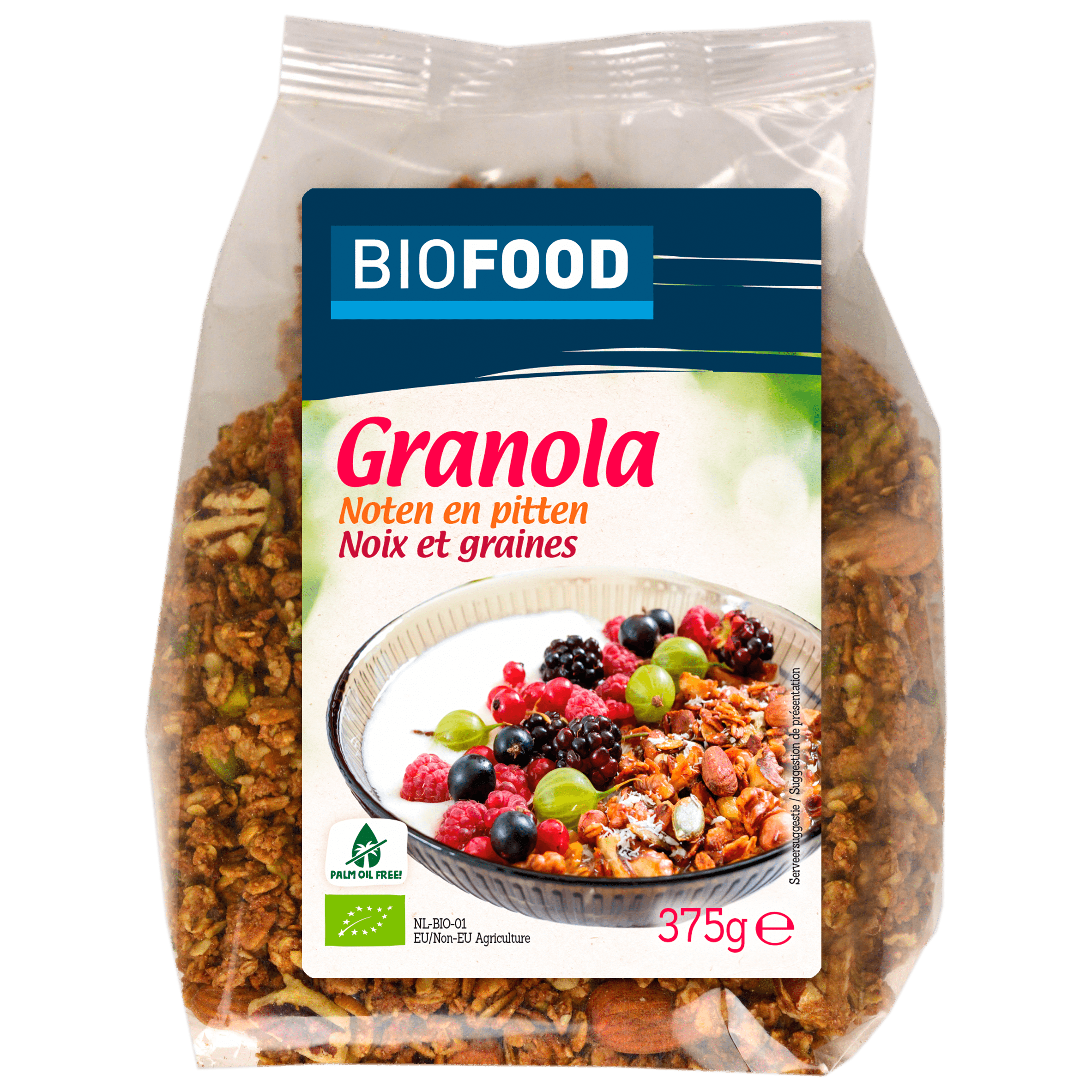 Geniet van een heerlijk en vezelrijk ontbijt met de Damhert Biofood Granola met noten en pitten. Deze biologische granola bevat een rijke mix van tarwe-, haver-, gerst- en roggevloeden, verrijkt met een variëteit aan noten en pitten. Bewaar het product koel, droog en donker voor de beste kwaliteit.