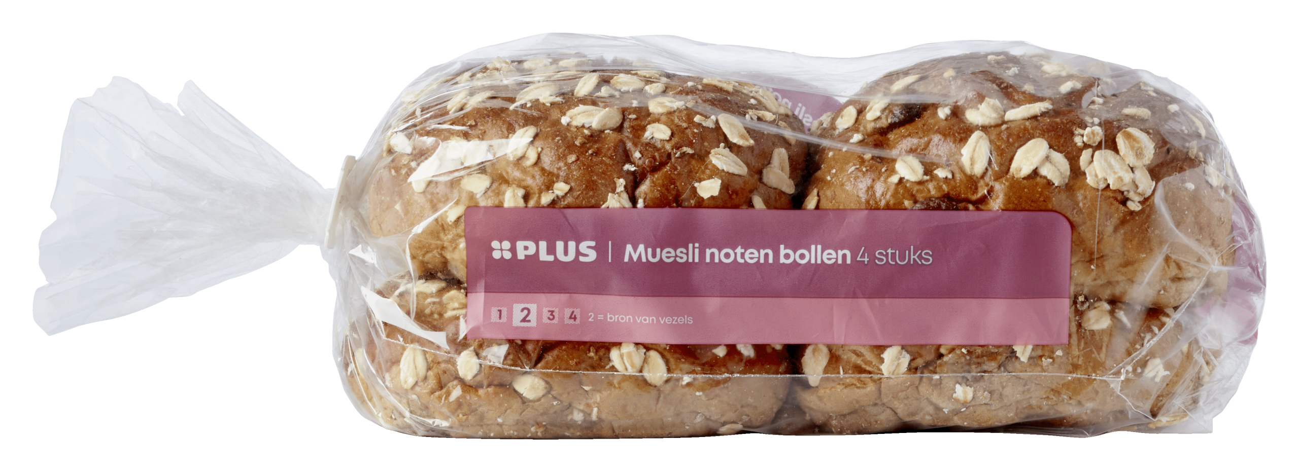 Geniet van de PLUS Muesli-notenbollen, een heerlijke combinatie van bruin tarwebrood gevuld met rozijnen, gedroogde appel en noten, en gedecoreerd met havervlokken. Deze voedzame muesli-bollen bevatten belangrijke voedingsstoffen en zijn een perfect tussendoortje of ontbijtoptie voor elke dag.