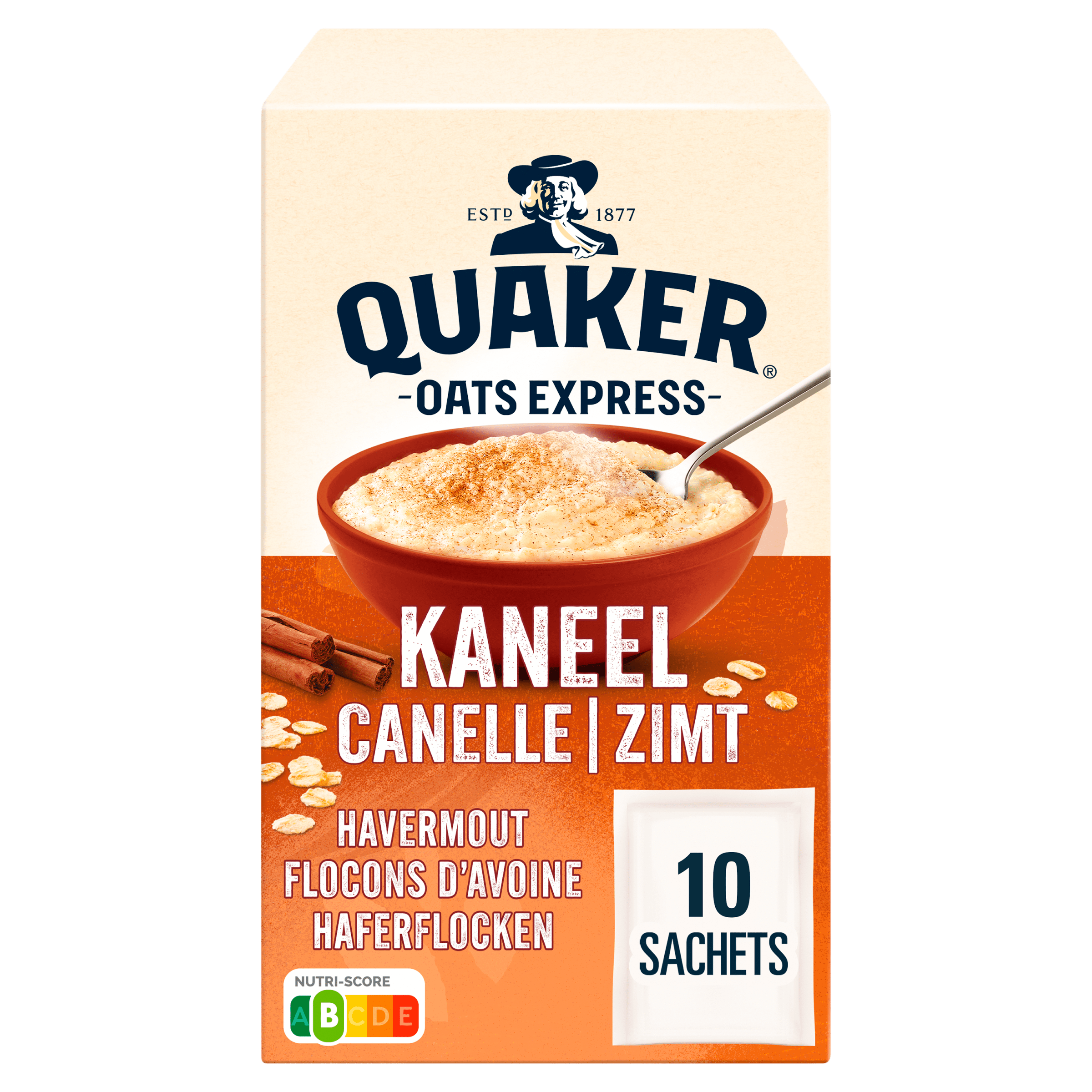 Geniet van de heerlijke smaak van Quaker Havermout Kaneel! Deze volkoren havermout biedt een snelle en gemakkelijke bereiding met alleen natuurlijke ingrediënten. Elke portie bevat 33% van de dagelijkse aanbevolen hoeveelheid beta-glucanen vezels, die helpen het cholesterol te verlagen. Perfect als ontbijt of snack, vooral met melk. Verpakt in handige porties om het je nog eenvoudiger te maken.