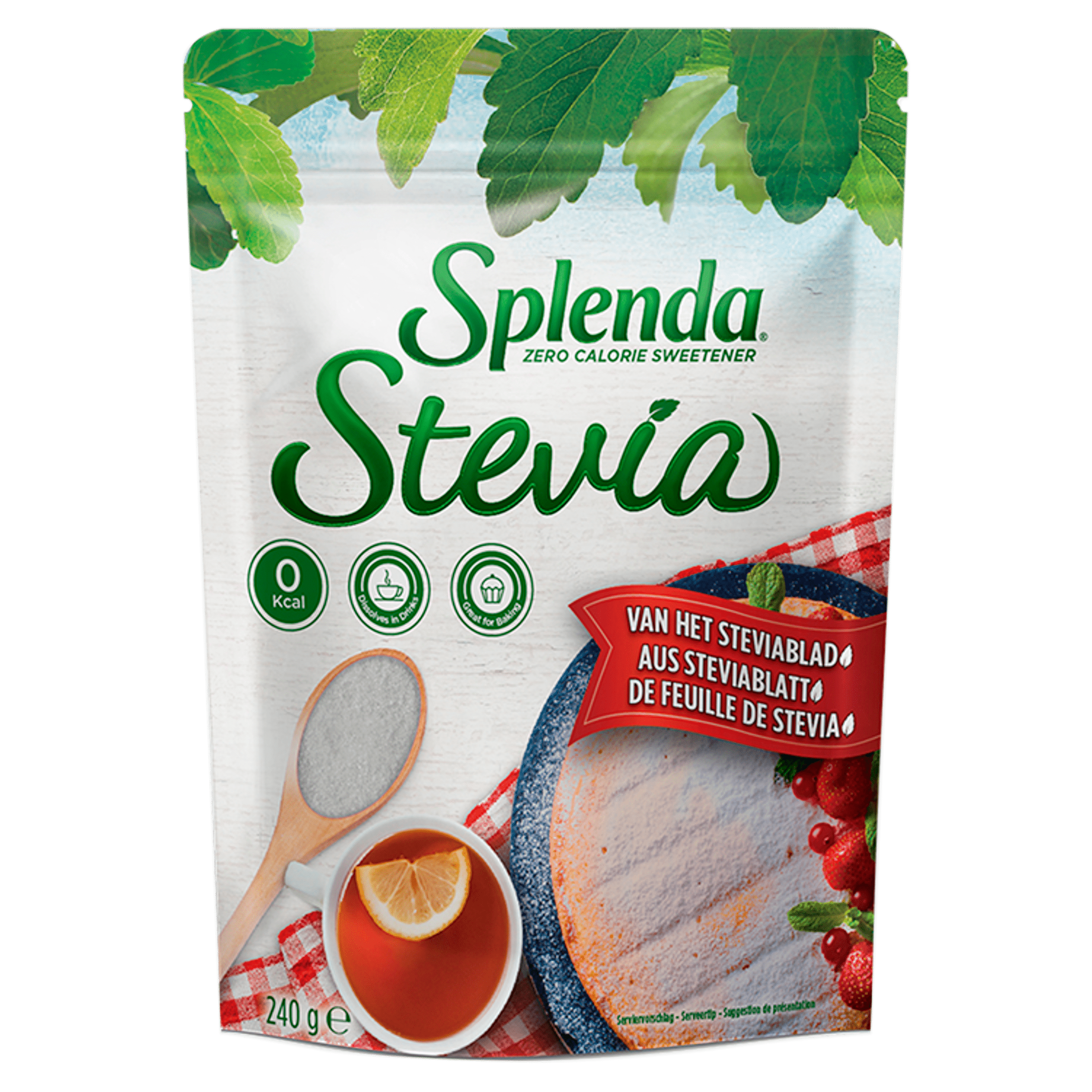 Splenda Stevia Zoetstof is een kristalvormige zoetstof afkomstig van het Steviablad, ideaal voor gebruik in dranken, bakken of gewoon ter sprenkeling. Deze caloriearme zoetstof bevat geen bittere nasmaak dankzij het unieke Reb D-extract. Vervang zuccher met Stevia voor een zoete smaak zonder het schuldgevoel! Bewaar op een koele, droge plaats.