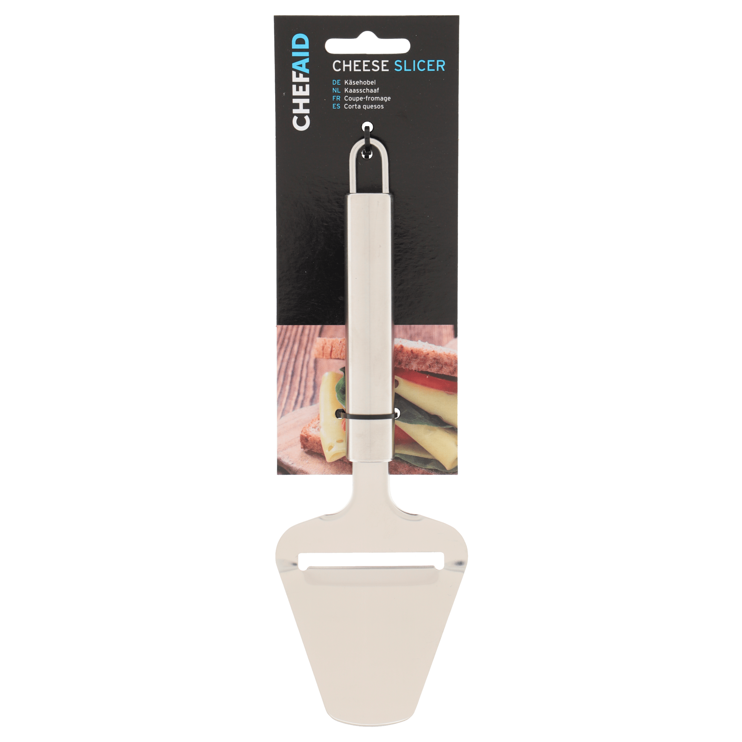 Met de Chef Aid Kaasschaaf snijd je in een handomdraai heerlijke plakken kaas, perfect voor op brood. Ontworpen met een licht gebogen snijvlak en een lang mes, ideaal voor zowel oude als jonge kaas. Dit praktische keukengerei is een must-have voor iedere keuken en staat garant voor gebruiksgemak en duurzaamheid.