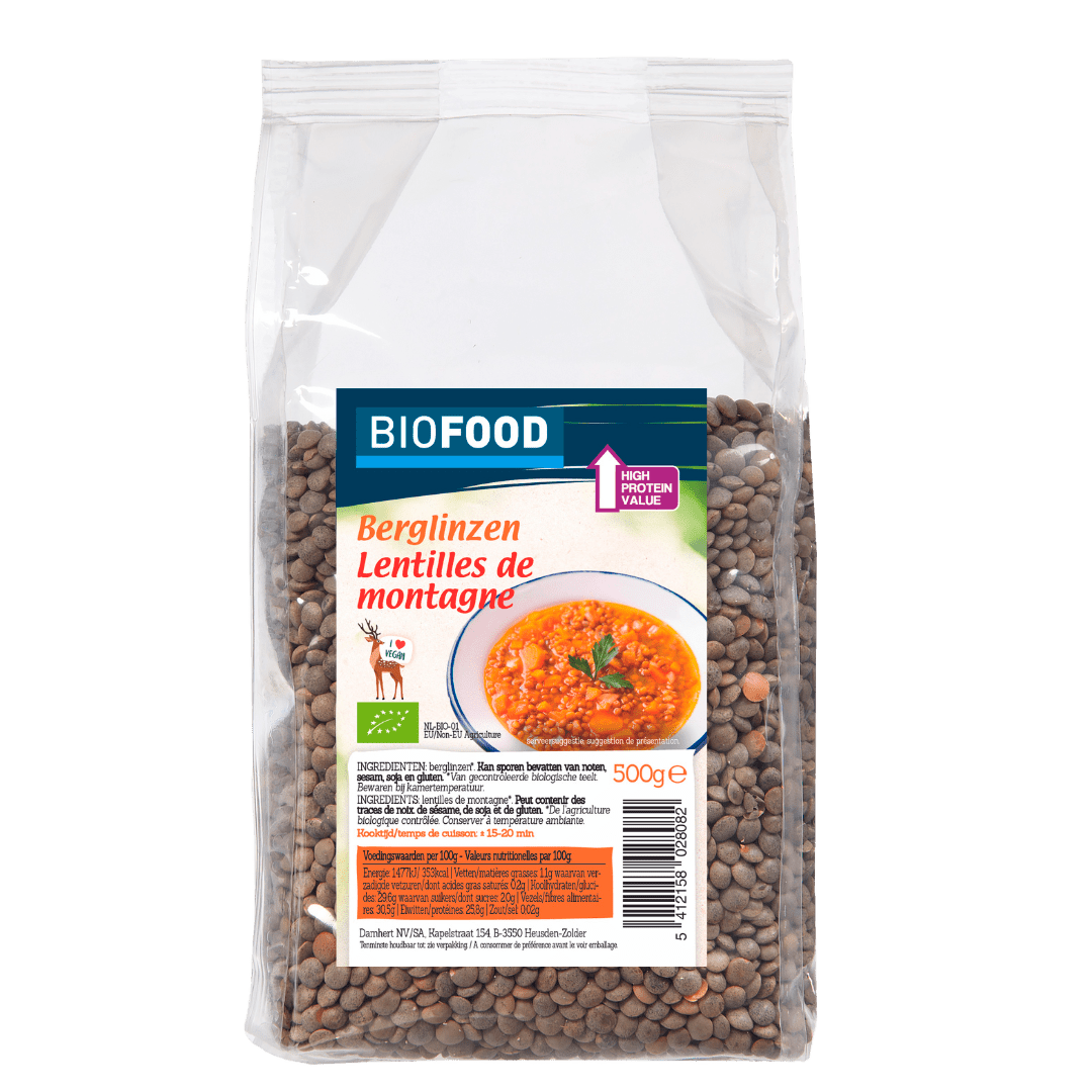 Damhert Biofood Berglinzen zijn biologische linzen die hun velletje behouden hebben, wat zorgt voor een stevige structuur. Ideaal voor stoofpotjes en gerechten waar extra vezels en eiwitten gewenst zijn. Met een kooktijd van ongeveer 15-20 minuten zijn ze eenvoudig te bereiden. Laat je inspireren en geef jouw stoverij een extra bite!