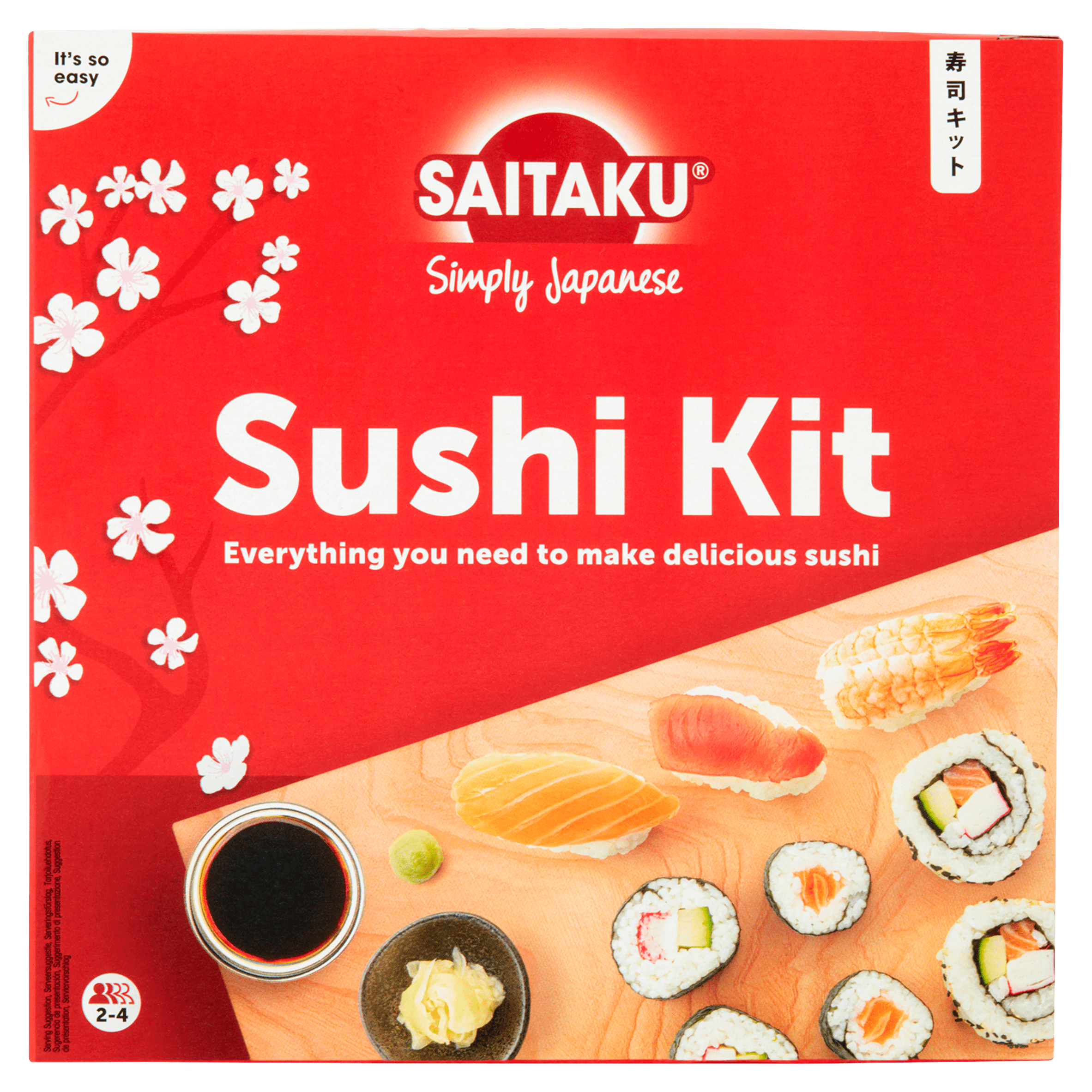 Met de Saitaku Sushi Kit maak je eenvoudig en snel heerlijke sushi voor 2-4 personen. Deze complete set bevat alles wat je nodig hebt: sushi rijst, rijstazijn, sojasaus, sushi nori (zeewier), gember, wasabi pasta, een bamboemat, eetstokjes en een instructieboekje. Volg de simpele stappen en verras je vrienden en familie met je eigen sushi creaties!
