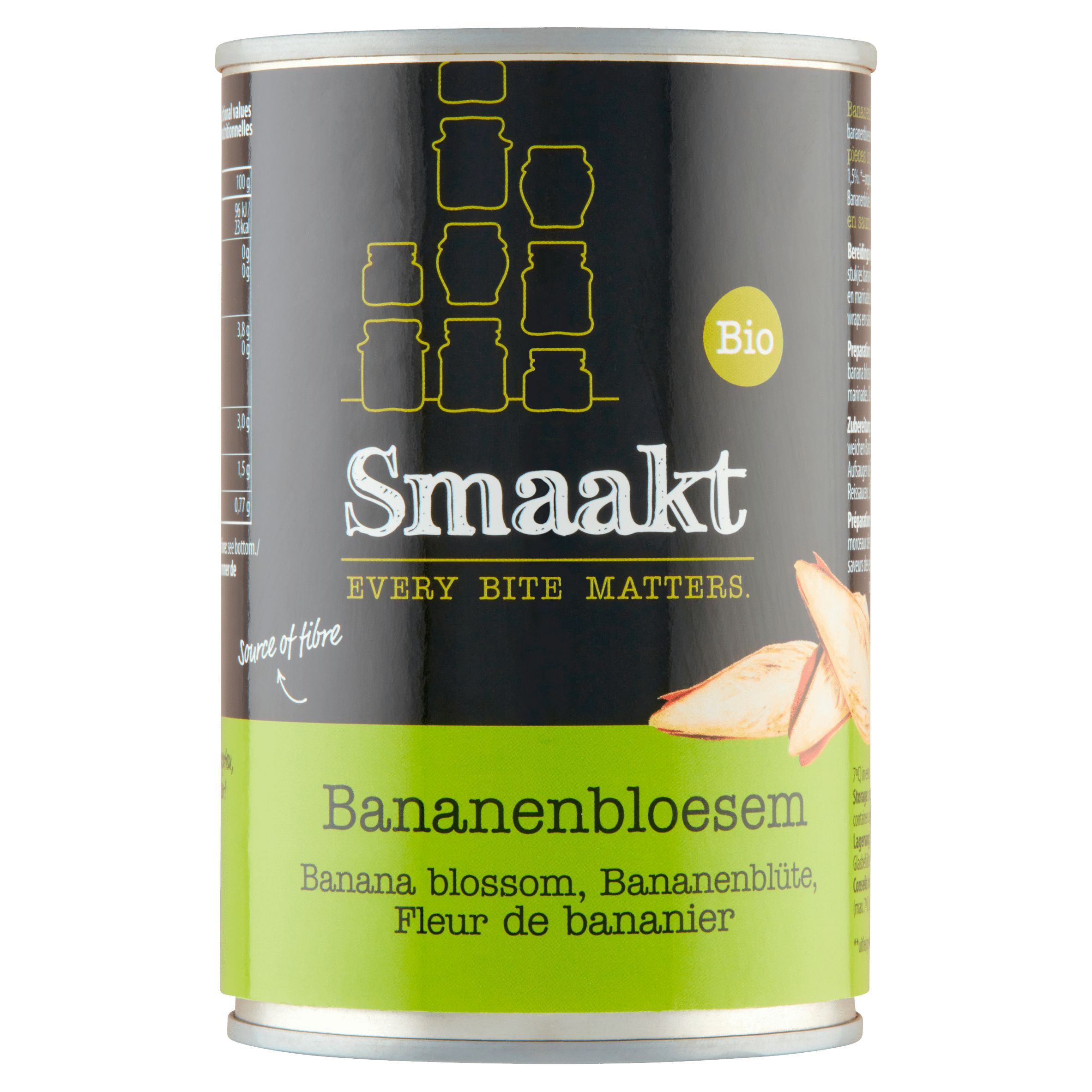 Smaakt Bananenbloesem is een biologisch en veganistisch product dat een bron van vezels biedt. De neutrale smaak van de zachte stukjes bananenbloesem zorgt ervoor dat ze perfect de smaken van kruiden en marinades opnemen. Ideaal voor gebruik in curry’s, pasta- en rijstsauzen, soepen, paella, wraps en salades. Bewaar het geopend in de koelkast en consumeer binnen 36 uur voor de beste smaak.
