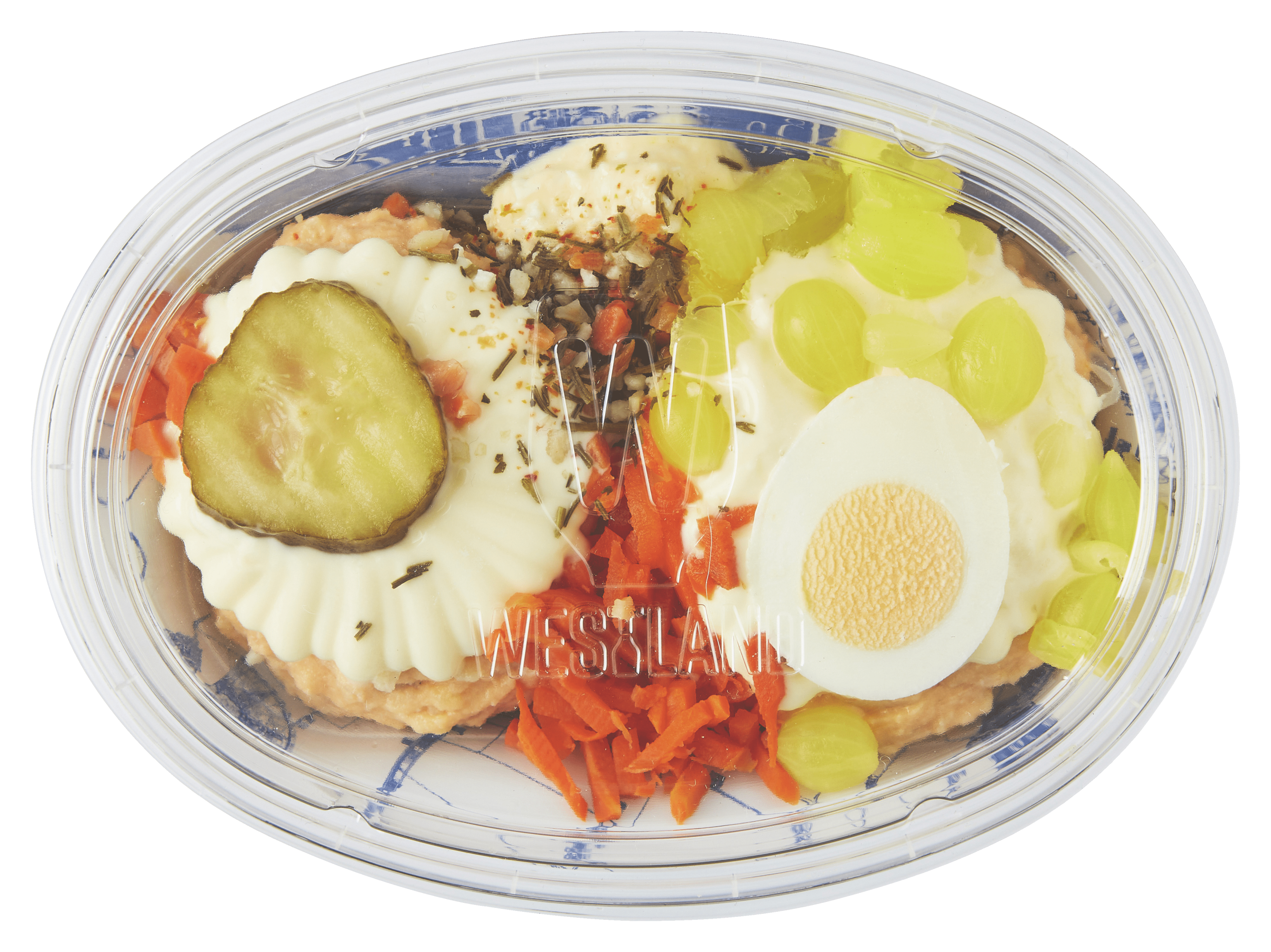 Geniet van het heerlijke Westland Ambachtelijk Zalmslaatje, perfect als tussendoortje of als een smaakvolle aanvulling bij een maaltijd. Dit zalmslaatje bevat 8% gekookte ASC zalm en is rijk aan smaak door de combinatie van aardappelen, scharreleieren, wortelen, augurken en speciaal geselecteerde kruiden. Gekoeld bewaren voor optimaal genot. Een verantwoorde keuze met ingrediënten van verantwoorde kwekerijen.