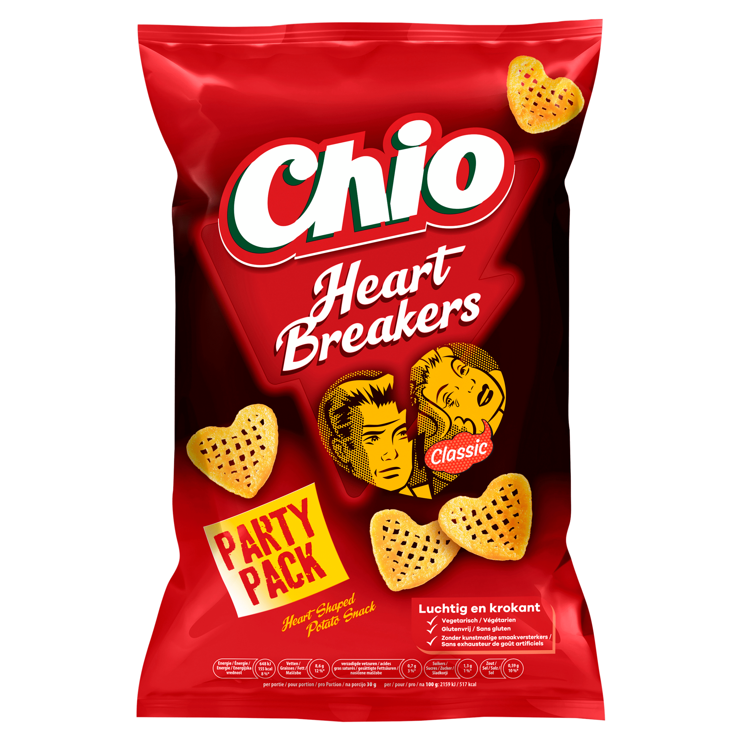 Ontdek de onweerstaanbare Chio Heartbreakers Partypack, een luchtige en krokante aardappel-rijstsnack in de vorm van hartjes. Perfect voor een feestje of gezellige avond met vrienden, deze snacks bieden een unieke crunch en smaakexplosie met elke hap. Geniet van een mix van zorgvuldig geselecteerde ingrediënten die elke bite bijzonder maken.