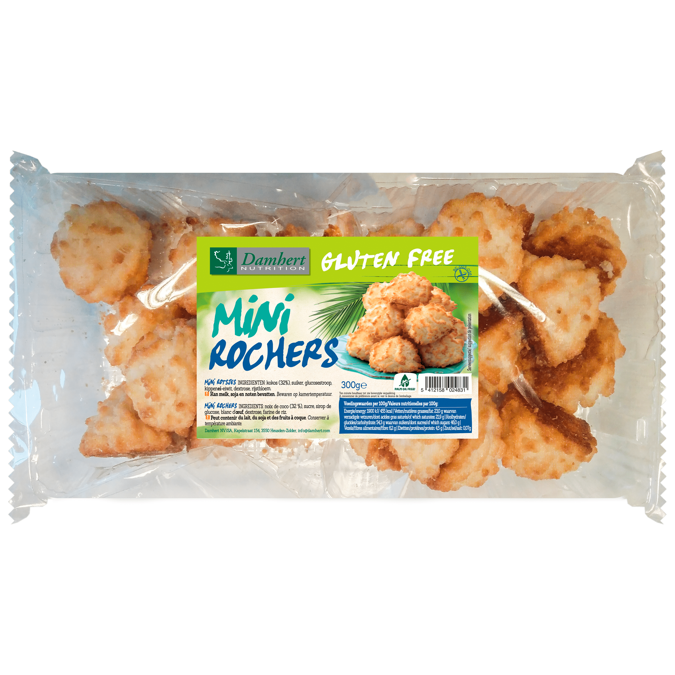 Laat je verleiden door de heerlijke Damhert Glutenvrije Mini Kokosrotsen! Deze kleine lekkernijen bevatten 32% kokos en zijn een perfecte glutenvrije traktatie. Proef het verschil met traditionele kokosrotsen en ontdek een smaak die velen zelfs nog beter vinden. Bijzonder geschikt voor fijnproevers die op zoek zijn naar een glutenvrij alternatief. Bewaar ze op een koele, droge plaats voor de beste kwaliteit.