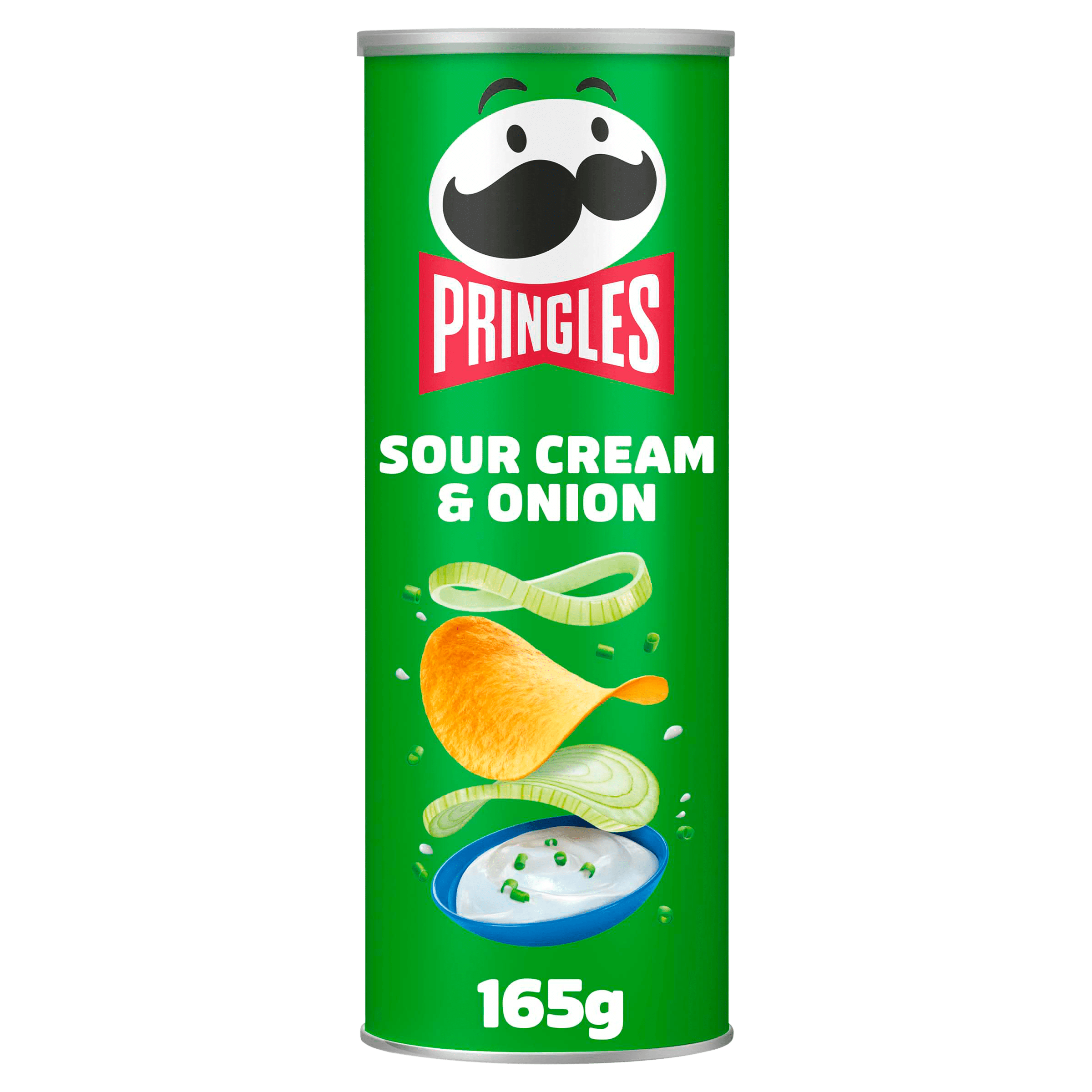 Geniet van de onweerstaanbare smaak van Pringles Chips Sour Cream & Onion! Deze heerlijke hartige snack heeft de perfecte balans tussen de romige smaak van zure room en de pittige uien. Ideaal voor bij een borrel, een filmavond of gewoon als lekkere snack tussendoor. Bevat geen vlees en is dus geschikt voor vegetariërs. Bewaar de koker op een droge plaats om de knapperigheid te behouden.