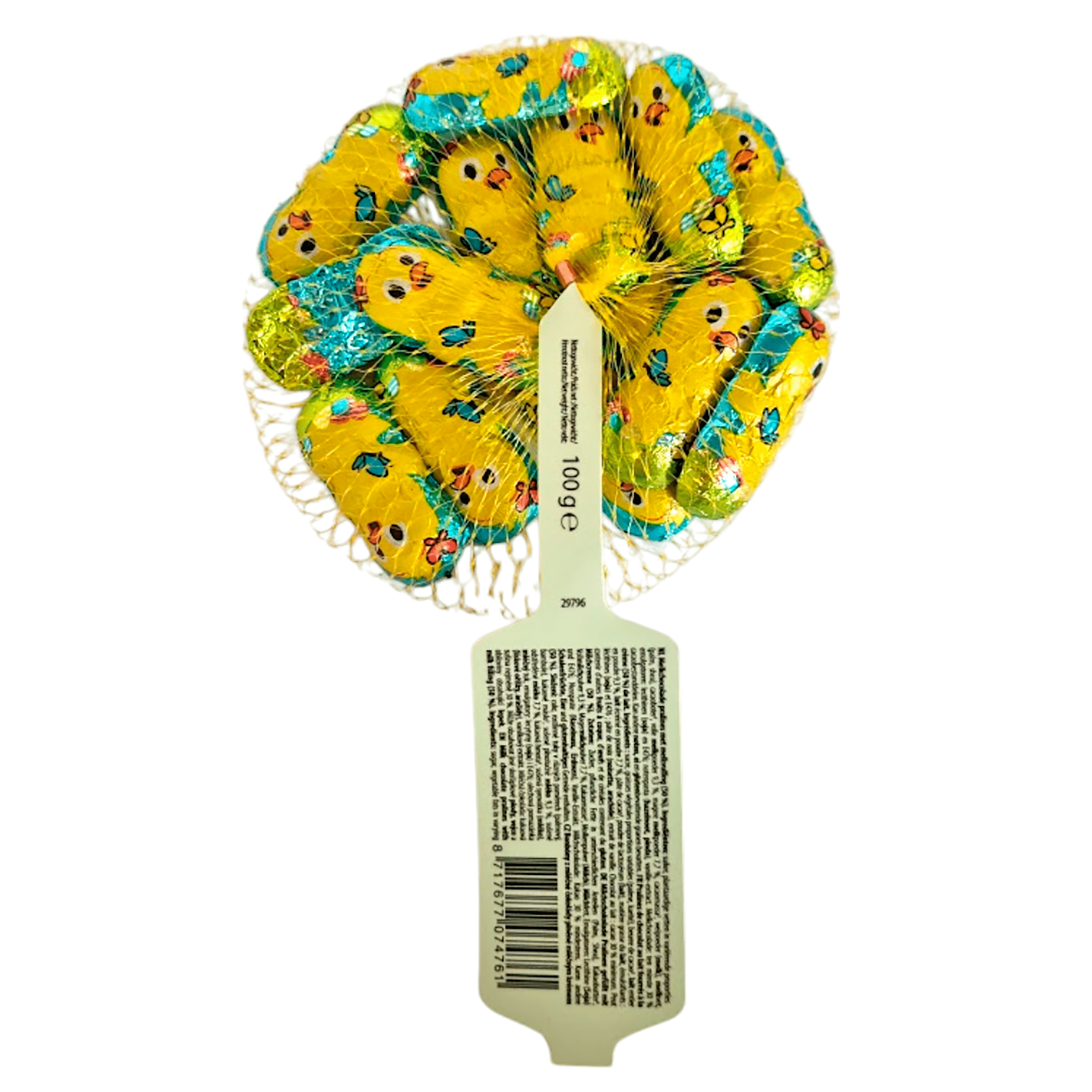Geniet van de heerlijke ABS Sweets Paaskuikentjes, schattige melkchocolade pralines met een romige melkvulling. Deze lekkernijen zijn perfect voor de feestdagen en zijn verpakt in een netje voor extra speelsheid. Met ingrediënten die bijdragen aan de bescherming van het milieu, waaronder Rainforest Alliance Certified cacao, zijn ze een verantwoorde keuze voor zoetekauw en milieuverantwoordelijke genieters.