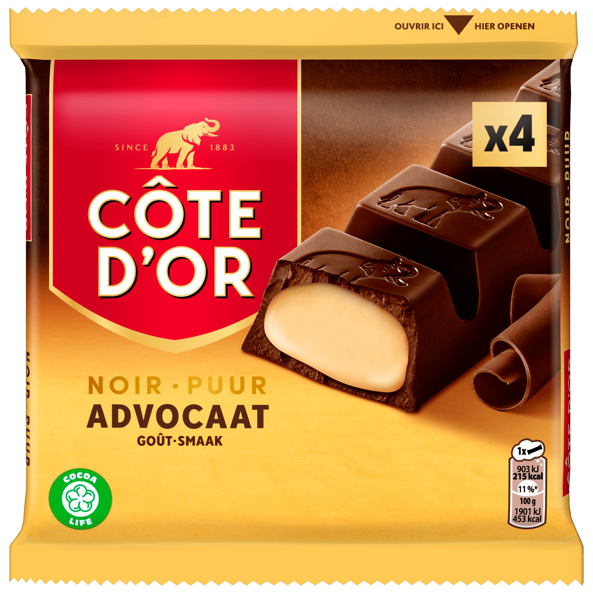 Geniet van de onweerstaanbare combinatie van C么te d’Or Pure chocolade met een heerlijke advocaatvulling. Deze gevulde chocolade met fondantvulling en een subtiele advocaataroma biedt een luxe traktatie voor iedere gelegenheid. Bewaar deze lekkernij op een droge plek, weg van warmte, en deel met vrienden of familie.