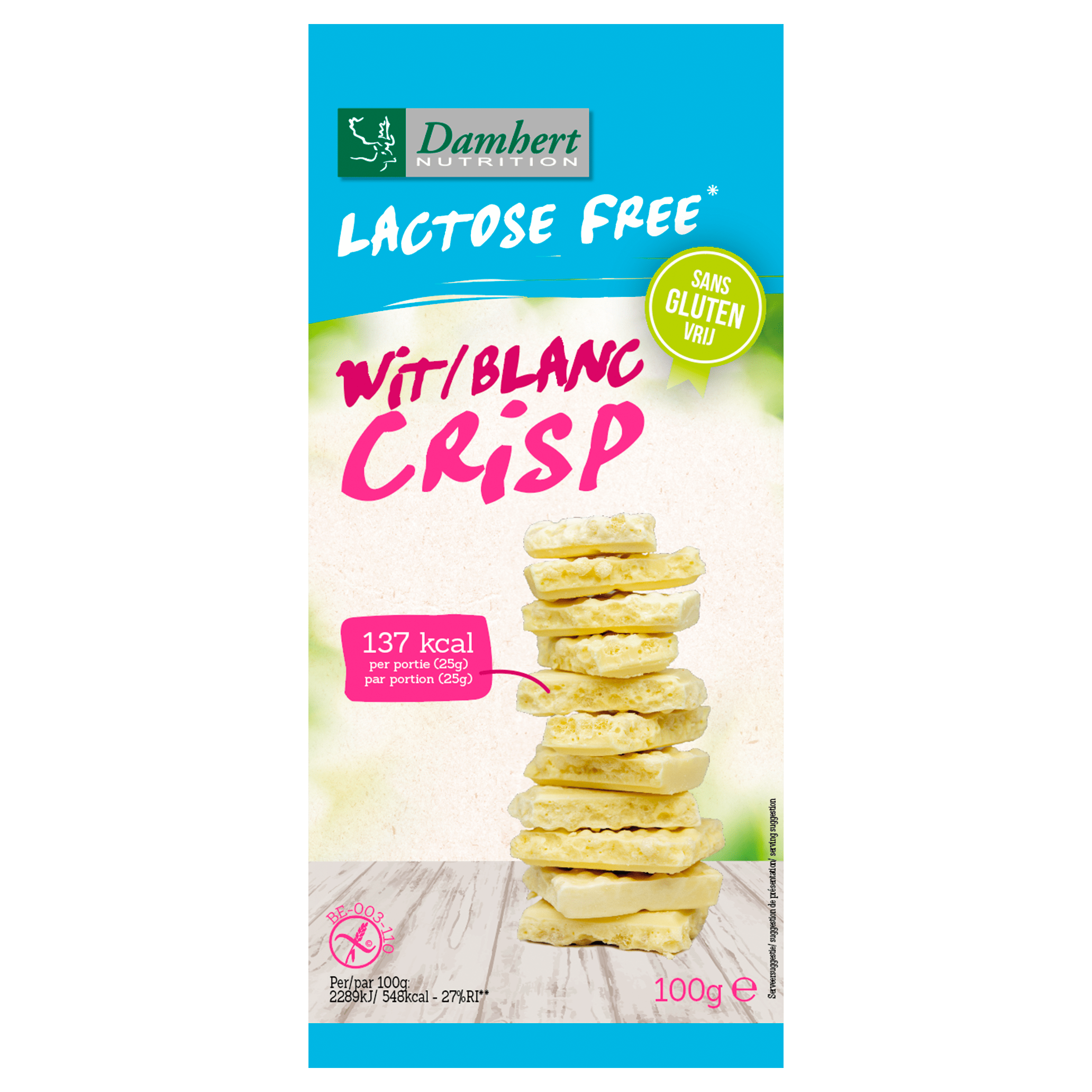 Damhert Witte Chocoladetablet Crisp Lactosevrij – Plus
