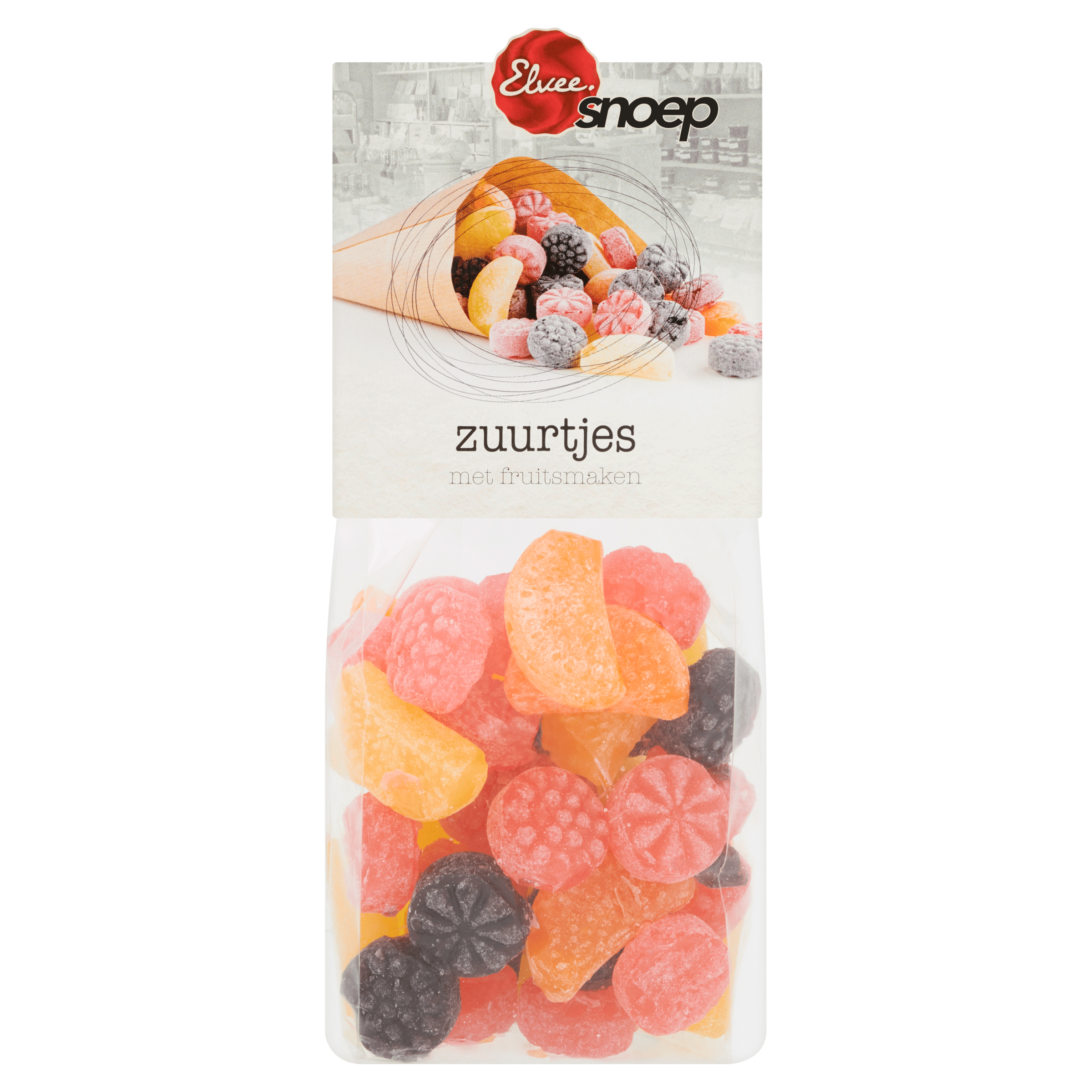 Geniet van de heerlijke Elvee Zuurtjes, ambachtelijke chocolade- en suikerwerken, met een focus op duurzaamheid. Deze mix van harde fruitsnoepjes biedt een explosie van fruitige smaken zoals grapefruit, sinaasappel, citroen, framboos en braam, perfect voor snoepliefhebbers.