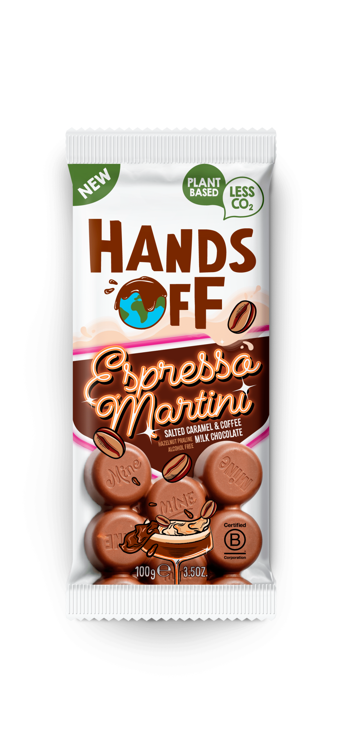Geniet van de unieke combinatie van smaken in de Hands off Espresso Martini. Deze heerlijke chocolade couverture met hazelnootpraliné, gezouten karamel en een vleugje koffie brengt een verkwikkende ervaring voor chocolade- en koffieliefhebbers. Perfect om te delen of om jezelf te trakteren. Gemaakt met Rainforest Alliance gecertificeerde ingrediënten, zodat je met een goed gevoel kunt genieten.
