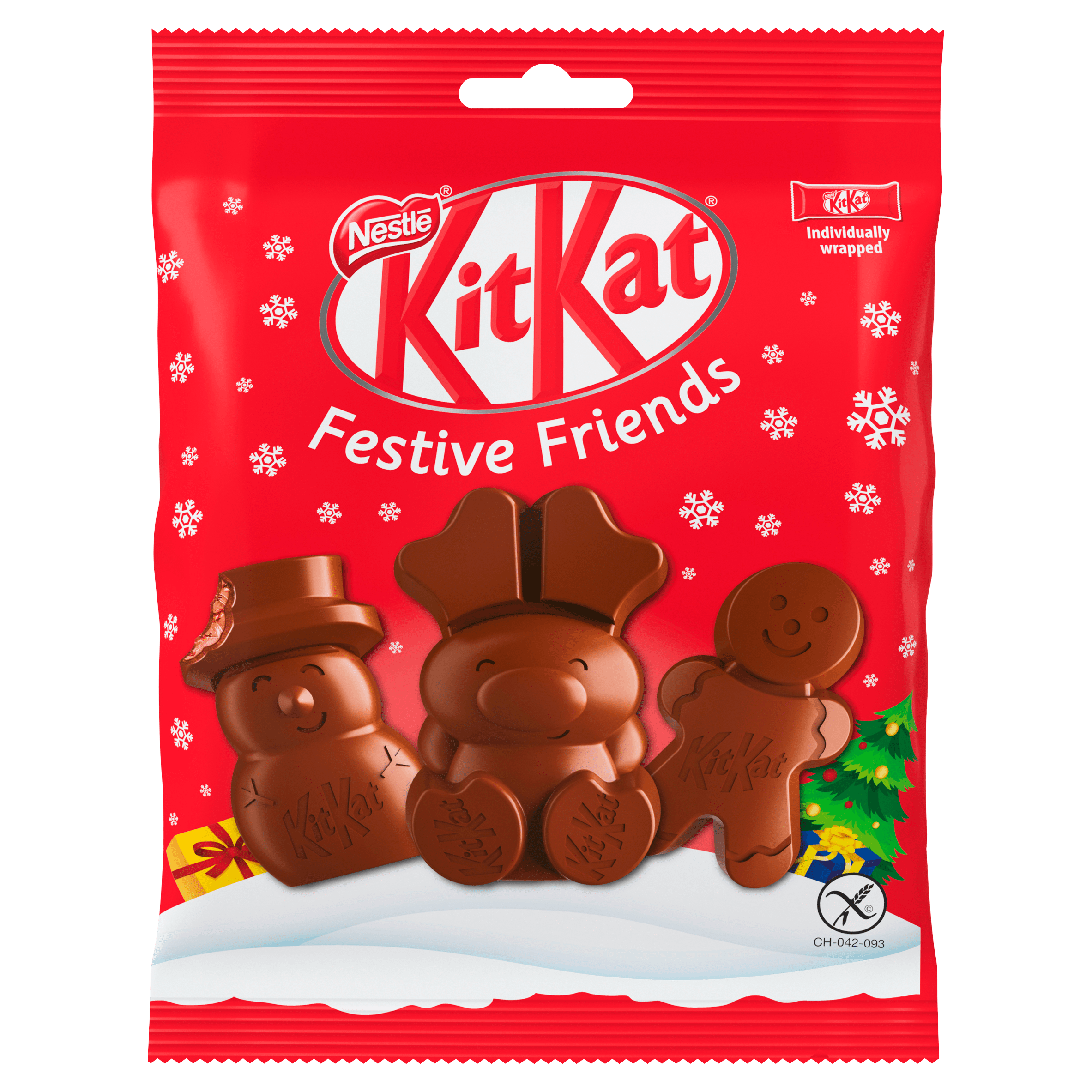 Geniet van de feestdagen met KitKat Festive Friends, een heerlijke zak vol met 6 glutenvrije chocolade kerstfiguren. Deze melkchocolade figuren zijn gevuld met een romige vulling en krokante granen en wafelstukjes. Perfect voor een lekkere kerstbreak. Gemaakt met Rainforest Alliance gecertificeerde cacao, met een Nutri-Score van E. Bewaar deze lekkernij koel en droog om maximaal te genieten van de luchtige textuur en de unieke smaken.